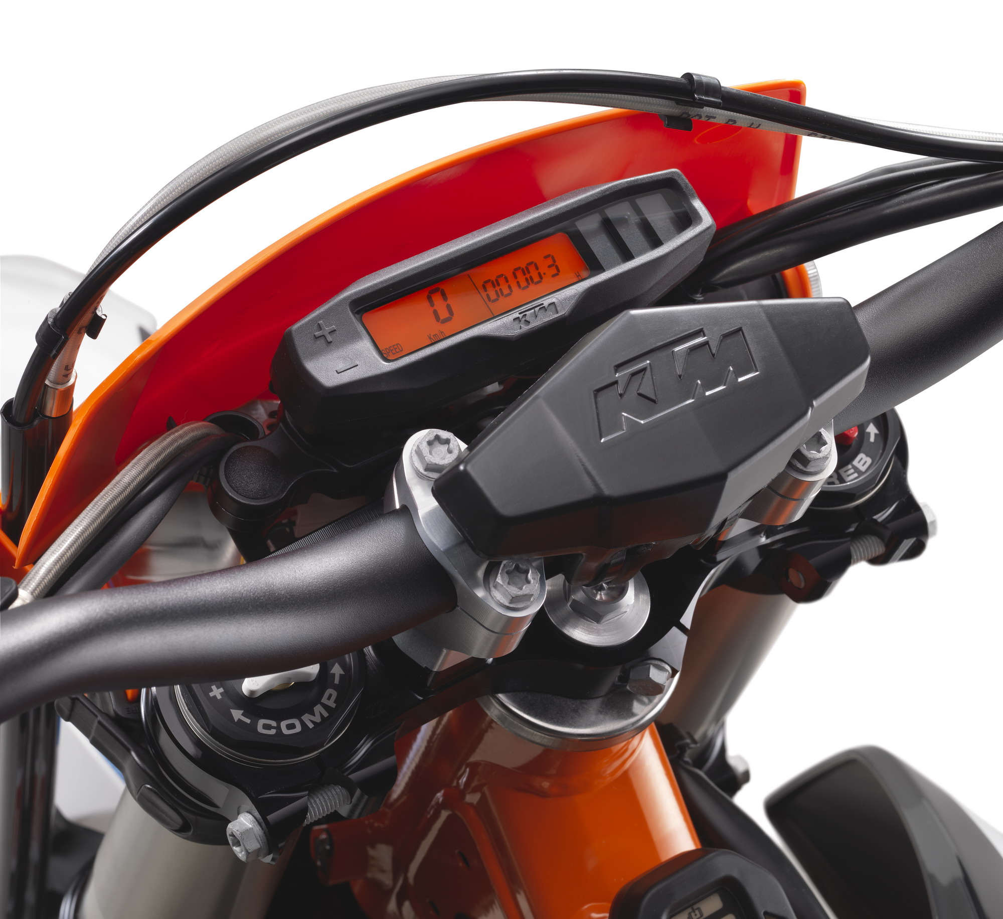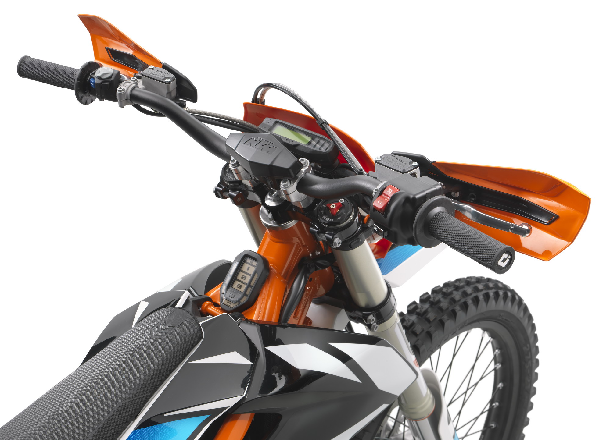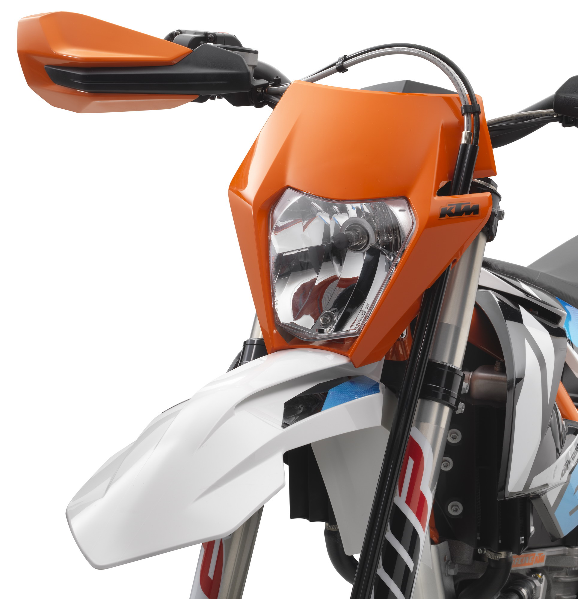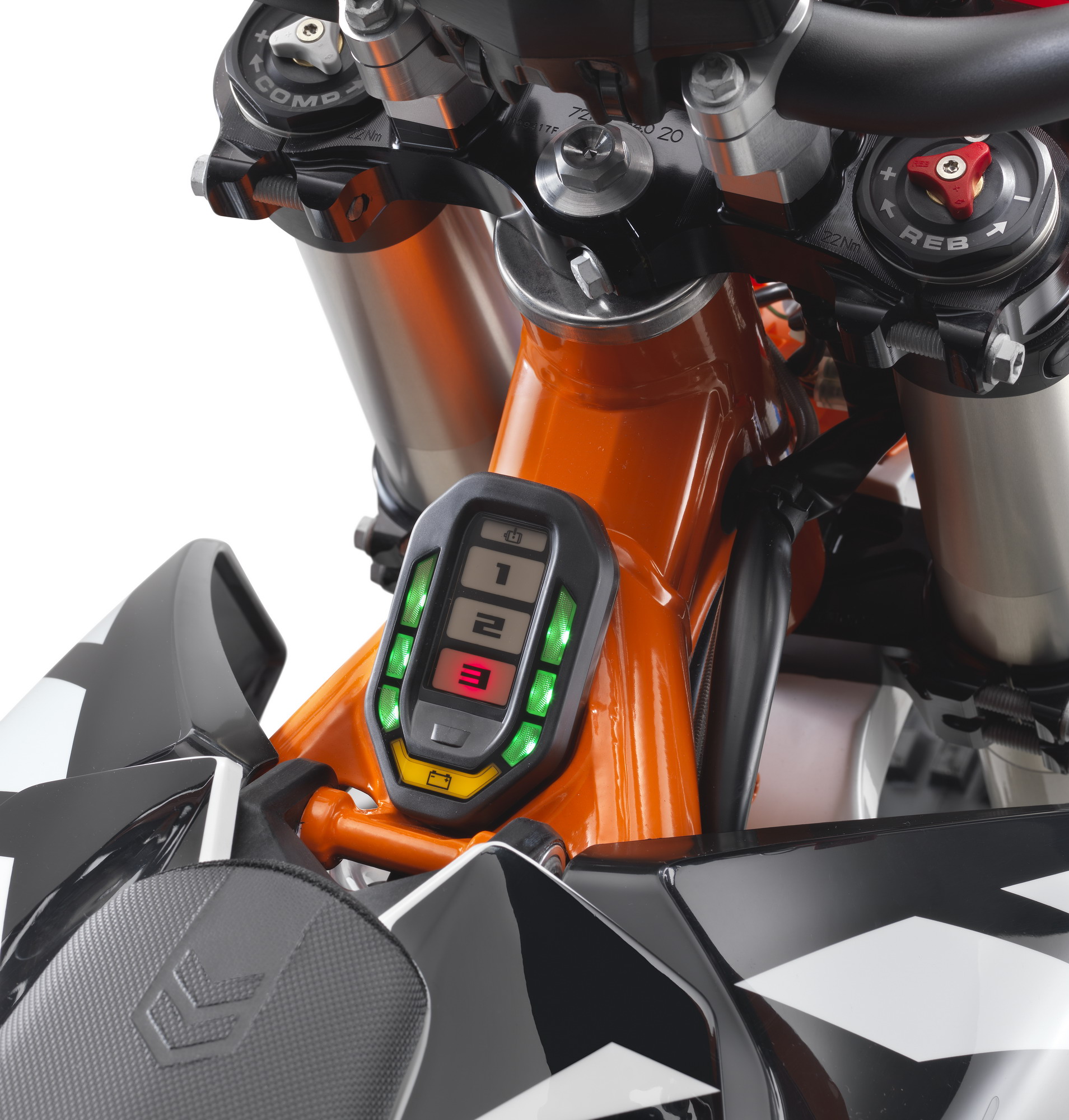 KTM 日前在奧地利當(dāng)?shù)刂募t牛 Hangar-7 發(fā)布了他們的最新電動(dòng)耐力越野(Enduro)E-XC 2018。新車的驅(qū)動(dòng)來(lái)源是一個(gè)水冷式電機(jī),額定輸出功率 9 kw(約 12 匹),峰值輸出功率為 18 kw(約 24.5 匹)。車身采用了一副鋼管式的車架,WP Xplor 43(43 mm 叉芯直徑)的倒立式前叉、WP PDS Xplor 的后減震,并配備了小型的數(shù)字式儀表板、電量表。
