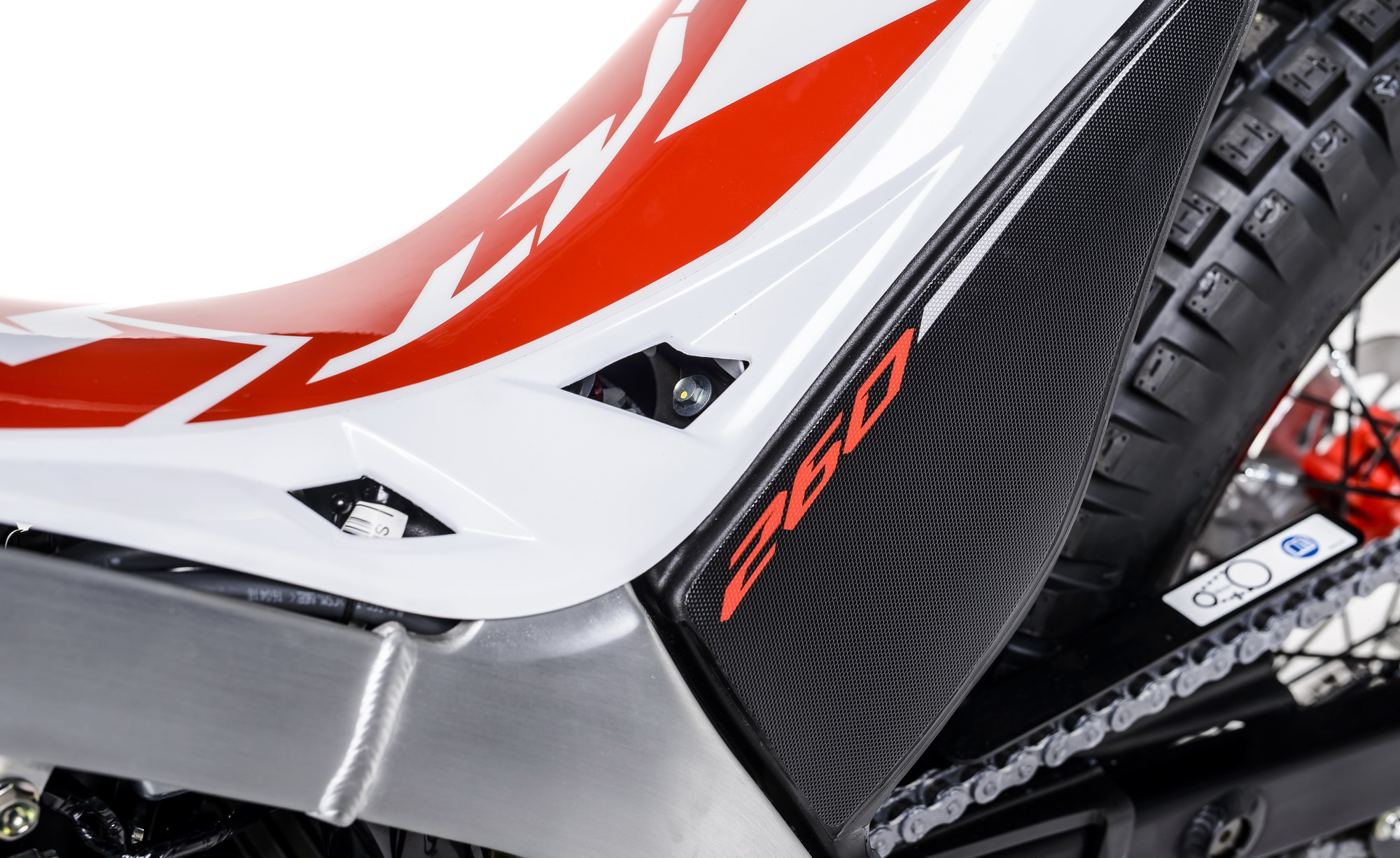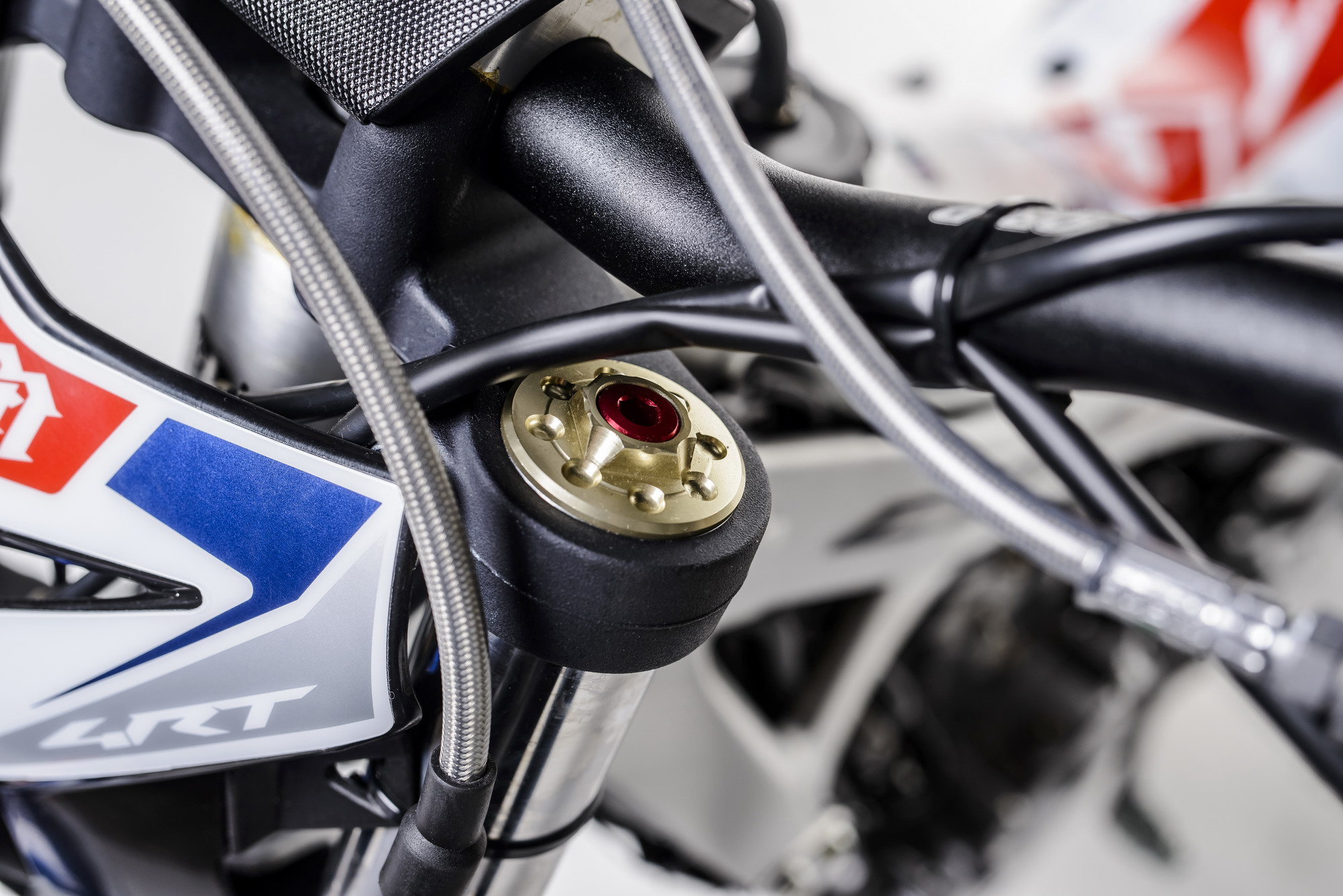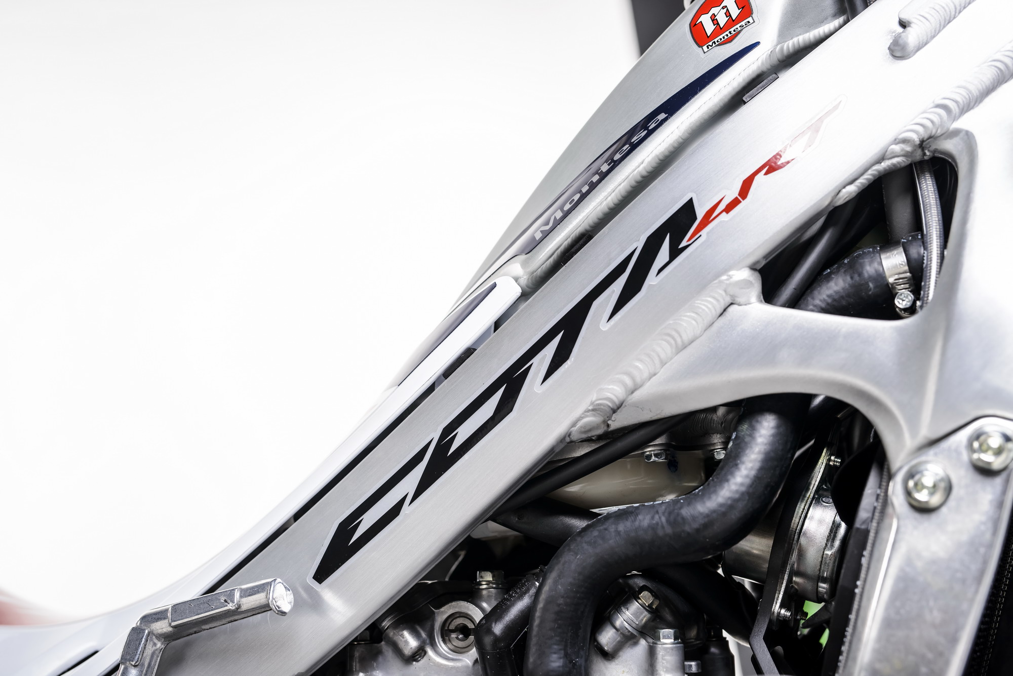 2018' Cota 4RT260 搭載一副水冷四沖程單汽缸、SOHC(Unicam)四汽閥的發(fā)動機,排汽量 259 cc,節(jié)汽閥口徑為 28 mm 的 PGM-FI 電子燃油噴注系統(tǒng),五檔的變速齒輪箱。車身使用一副粗壯的鋁合金車架,叉芯直徑為 39 mm 的正立式前叉。作為專用賽車,Cota 4RT260 的全車重量只有 74 公斤。