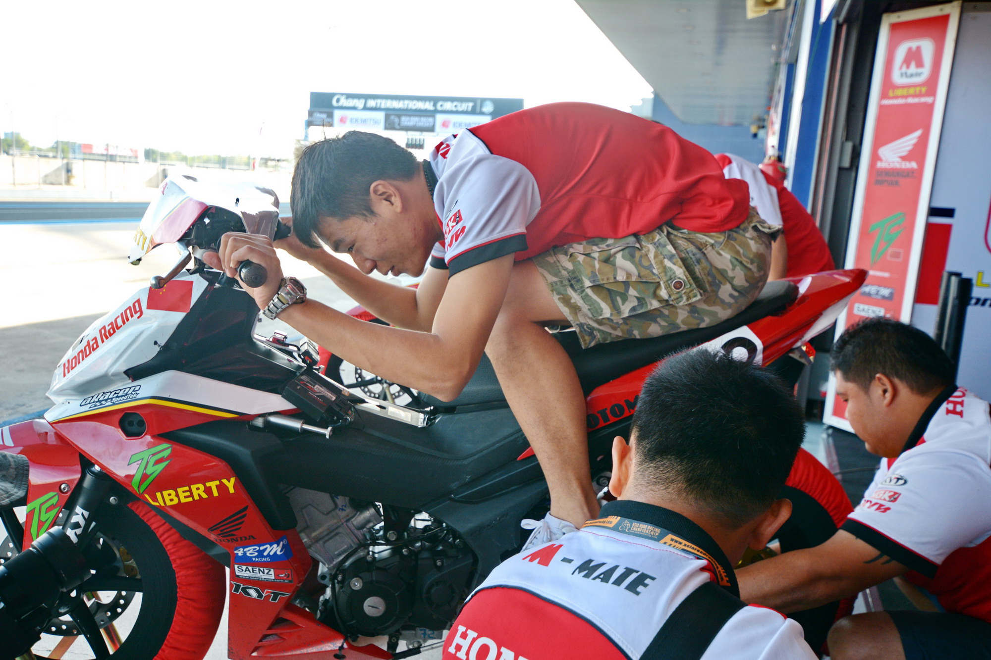 完成了計時練習、回到維修站之后,袁際博表示:“ 經過印尼站的比賽,自己對彎梁的駕駛方式有了新的理解,這對于今場比賽有所幫助。在昨天的練習中,自己的單圈成績比上一場泰國站快了接近兩秒。雖然自己有所進步,但對于本組別的東南亞選手還是有不少距離。在這兩天練習中,自己順勢跟著車群的氣流,學習他們快速變線與過彎的技巧。對于泰國武里南賽道,自己已經比之前要熟悉,在之前 ARRC 比賽的每一站里,自己都不斷從中去找落后的原因,體重?賽車問題?自己駕駛技巧?等等。雖然我與他們的差距不能短時間內縮短,但我也希望能找到自己不足原因。這場是今年ARRC比賽最后一站,我會努力賽好這一場比賽。 ”