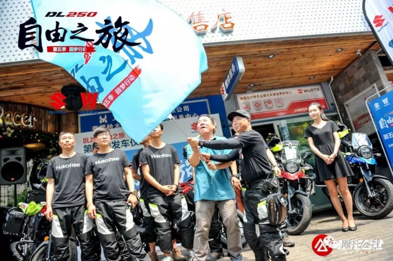 豪爵鈴木劉總與車手代表共同揮舞旗幟。十天之后,這面大旗將在蘭州大會(huì)師的活動(dòng)現(xiàn)場(chǎng)再次揮舞。