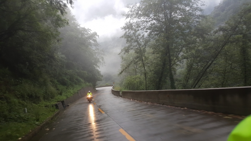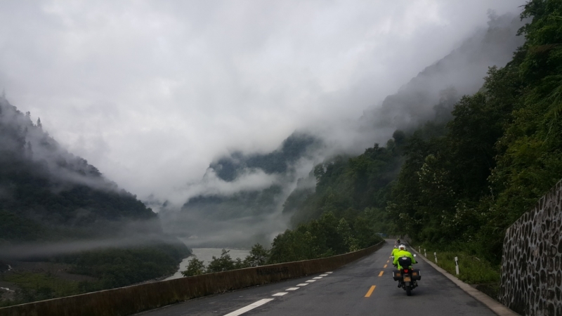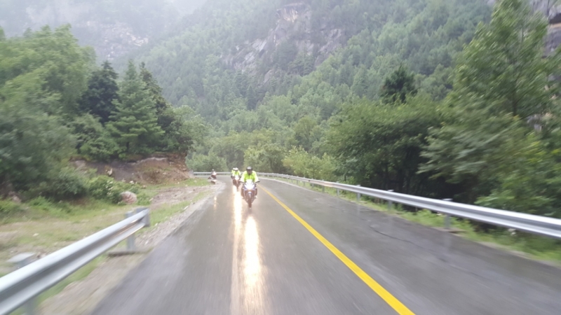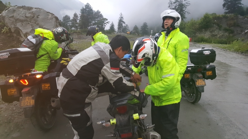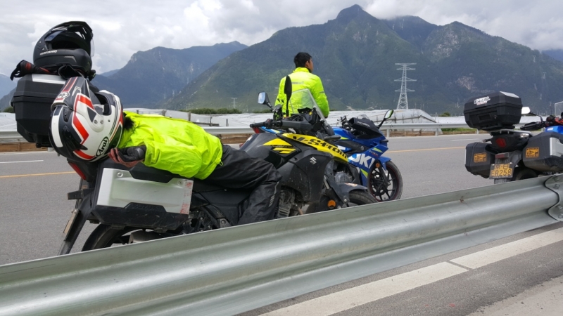 出發(fā)后不久,天空飄起了細(xì)雨。自從進(jìn)入藏區(qū)后,一路雨水相伴,雨中騎行本已司空見(jiàn)慣,但因?yàn)樵谘┥较?,且沒(méi)吃早餐,大家體溫下降很快。到達(dá)通麥的時(shí)候,我們找了一家早餐店,簡(jiǎn)單對(duì)付一下,補(bǔ)充體能。