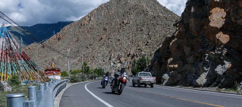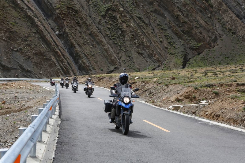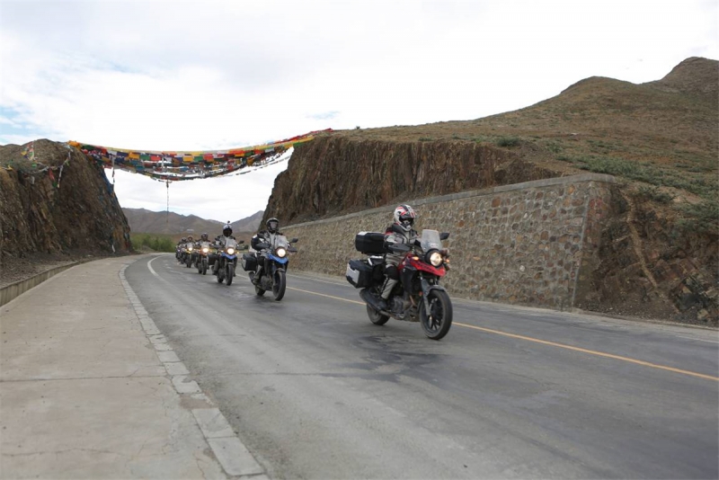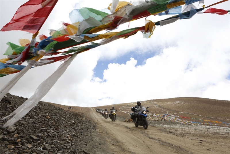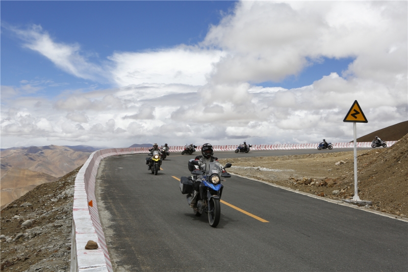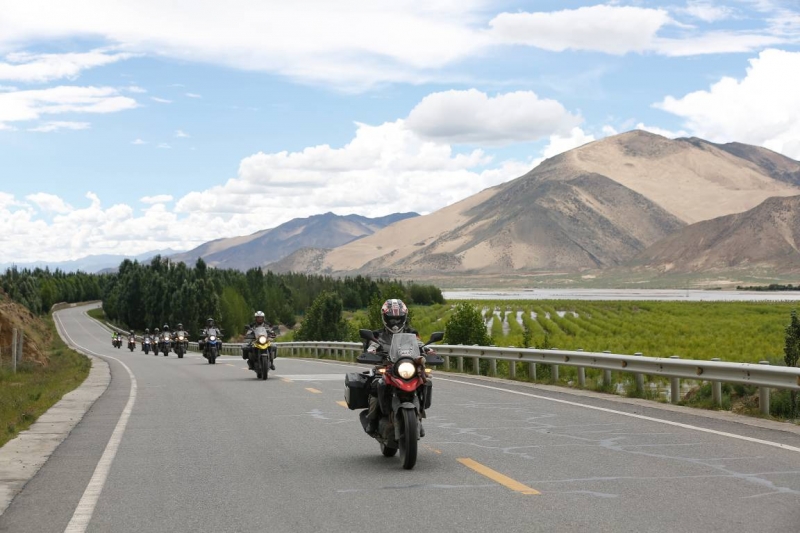 離開拉薩之后自由之旅車隊(duì)進(jìn)入了一馬平川的路段,路況與能見度都相當(dāng)之高。DL250騎士們穿過怪石嶙峋的山道,行走在白楊林立的G318中,用切割風(fēng)的速度與稀薄的空氣競(jìng)爭(zhēng),距離終點(diǎn)越近,前進(jìn)的欲望變得無比強(qiáng)大。