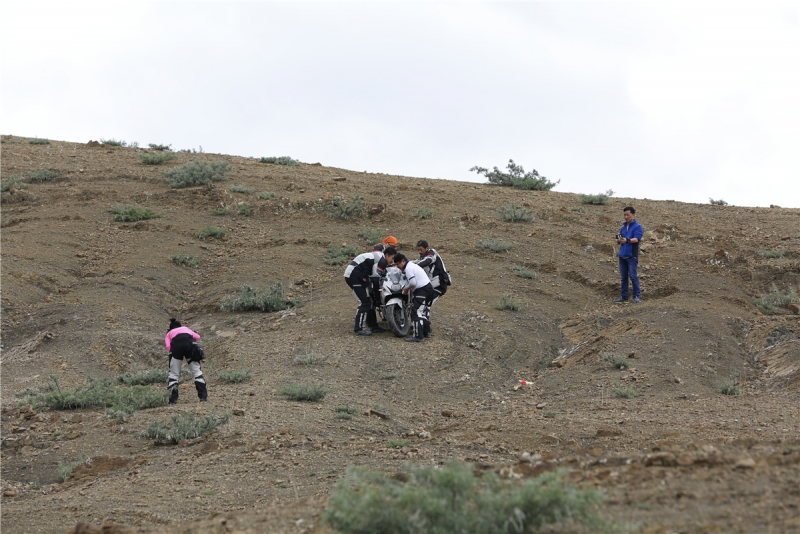 惡劣的路況更加體現(xiàn)車隊(duì)的團(tuán)結(jié)互助精神,看著領(lǐng)隊(duì)的表情就知道這路段的困難性了!