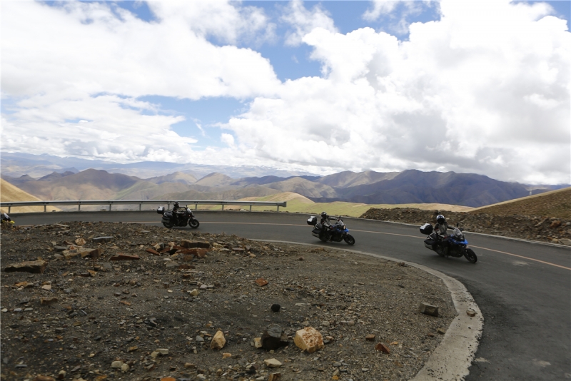 當(dāng)車輪行走在這蜿蜒無盡的環(huán)山道路上,穿越一座又一座山峰,每每登頂一座山峰的時(shí)候,眺眼遠(yuǎn)望心里總有著一種蒼茫大地誰(shuí)主浮沉的雄偉壯闊??赡苓@就是每一位騎者珠穆朗瑪之旅的感慨吧!