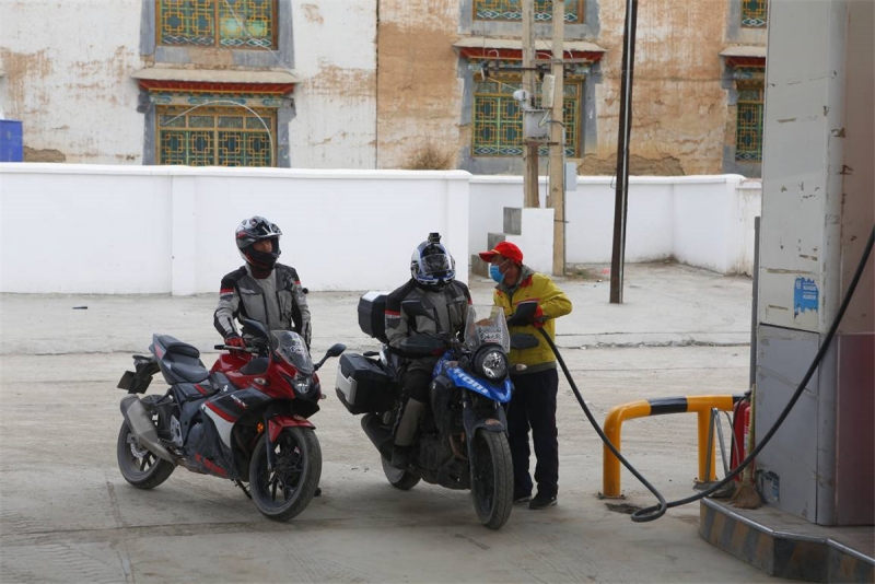 (ps:這是進(jìn)入藏區(qū)以來第一次在加油站直接提槍加油,終于不需要拿著油桶走到100米遠(yuǎn)處進(jìn)行灌油了。好感動(dòng)!加油站的兄弟給力)