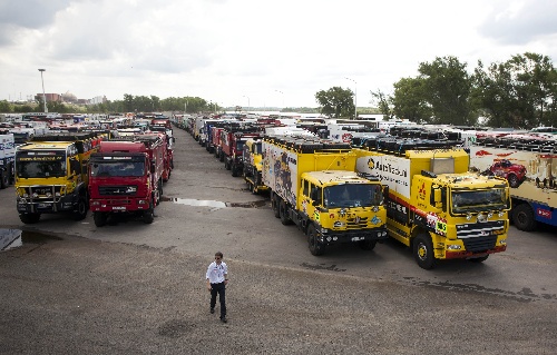 12月22日,參加2012年達(dá)喀爾拉力賽的賽車運(yùn)抵阿根廷布宜諾斯艾利斯省的薩拉特港。參賽的車手將在12月27日提車,直接駛往本屆賽事的出發(fā)站——阿根廷海濱城市馬德普拉塔。根據(jù)賽程安排,2012年1月1日,達(dá)喀爾拉力賽將從馬德普拉塔發(fā)車,穿越阿根廷、智利和秘魯三國,最后將于1月15日抵達(dá)秘魯首都利馬。 新華社發(fā)(馬丁·薩巴拉攝)