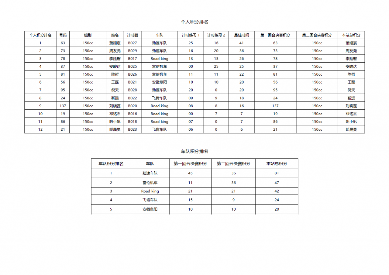 2018年CSBK/CRRC(寧波站)CRRC 150cc組積分表