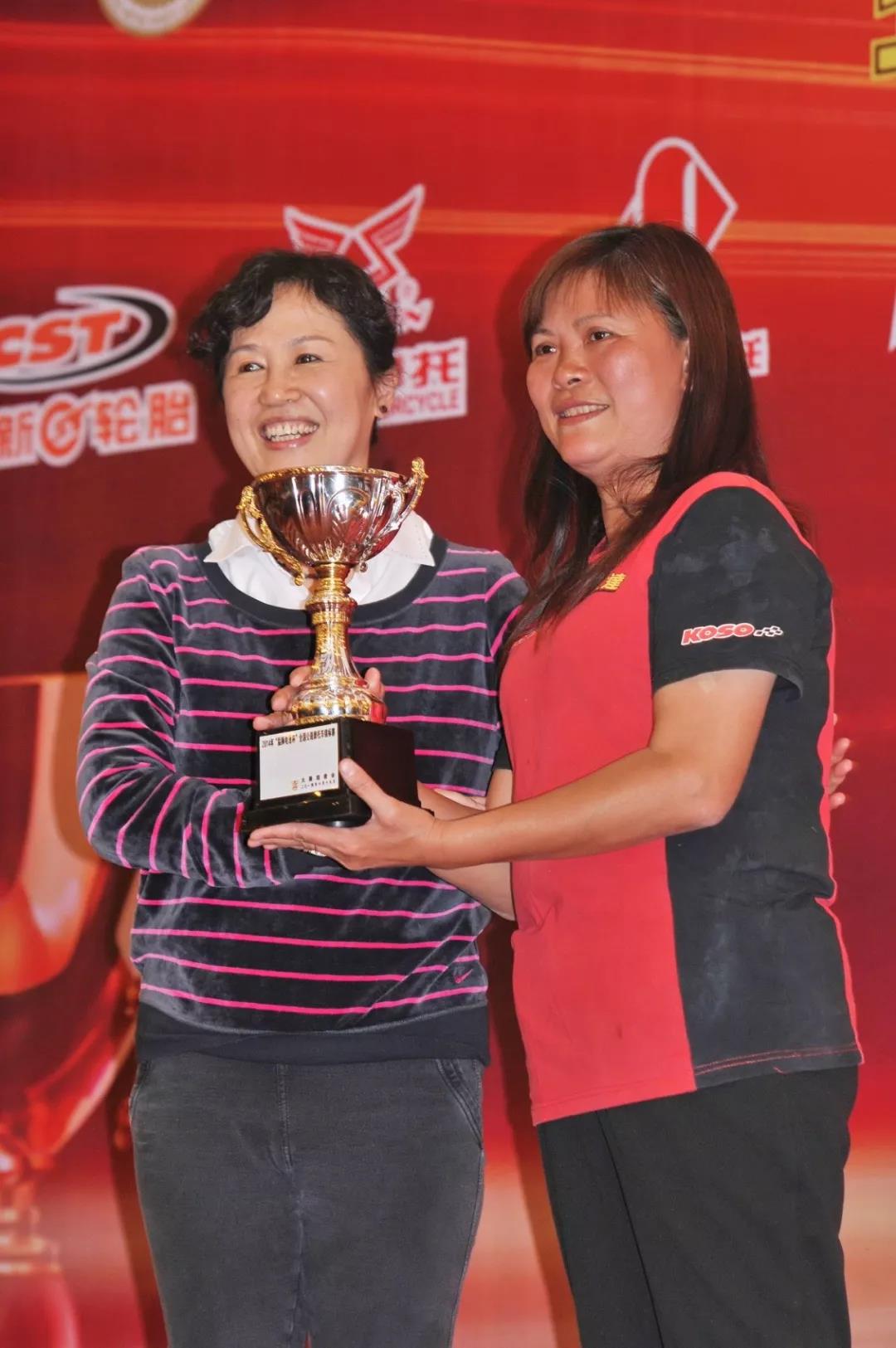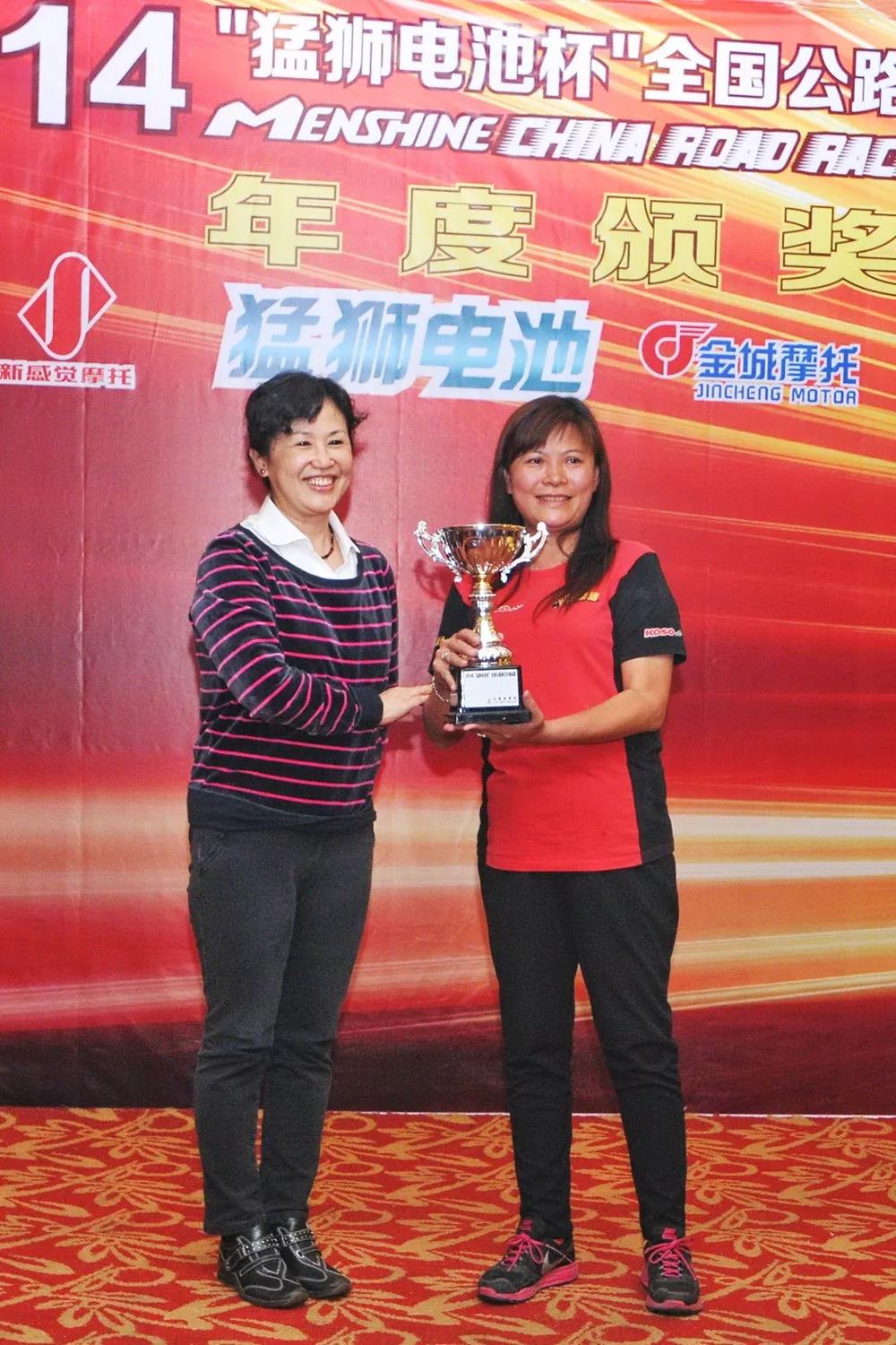 下圖:獲得 2014 年度全國公路錦標(biāo)賽年度貢獻(xiàn)獎的英姐。