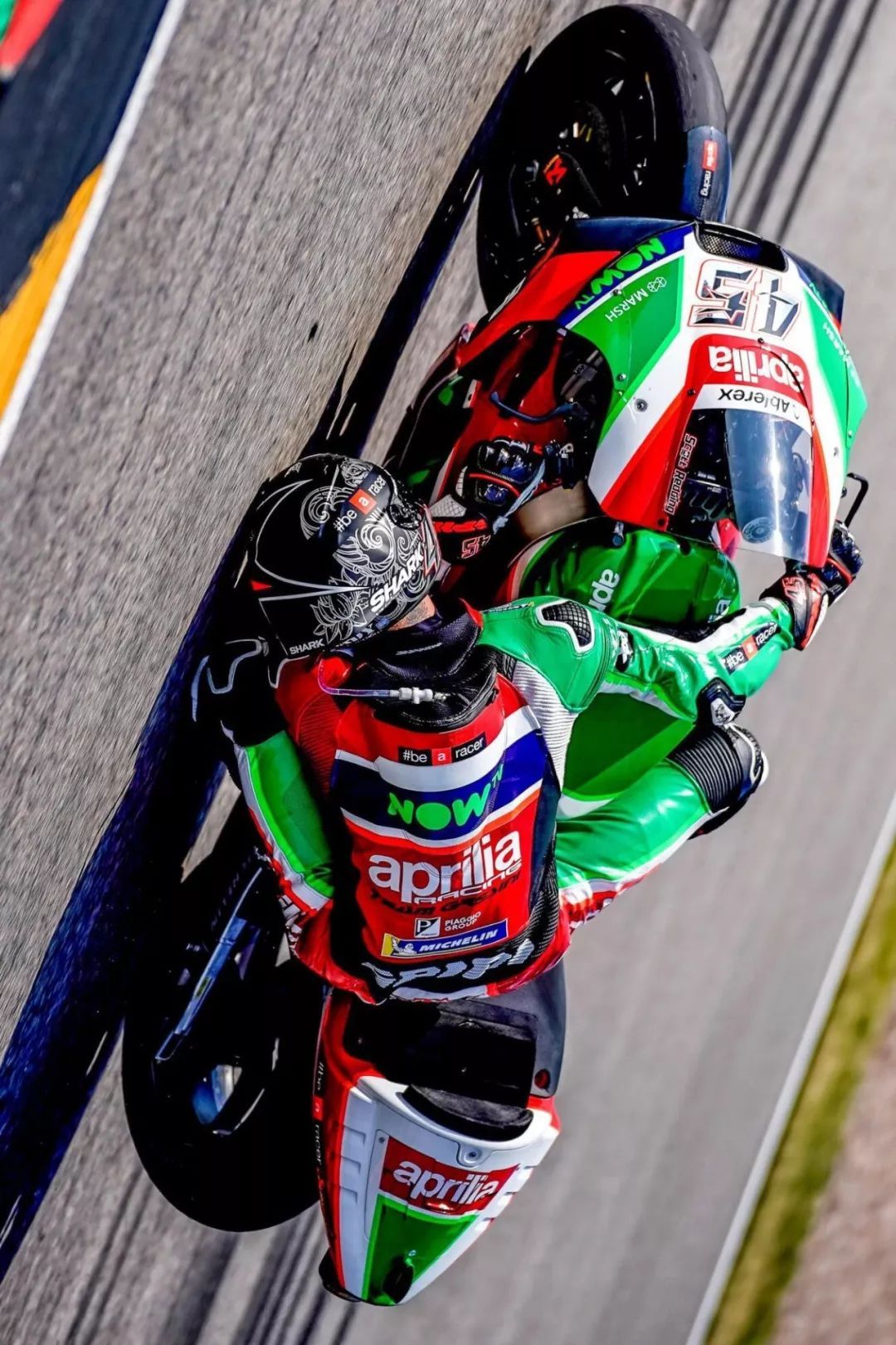 德國站,駕駛亞普利亞賽車的英國車手雷丁,最終跑獲了一席第 15 名。估計是看著馬昆斯的肩膀貼地過彎不夠刺激,雷丁就來了個擦著頭盔過彎,看這模樣、或許以后要為他的頭盔配上磨包才行了。
