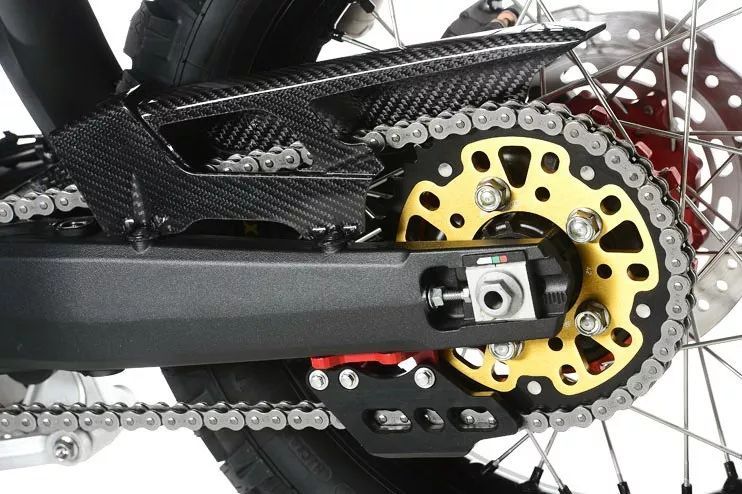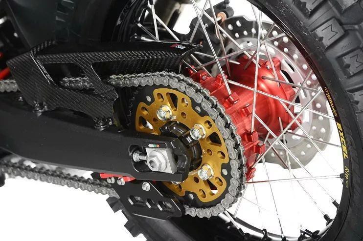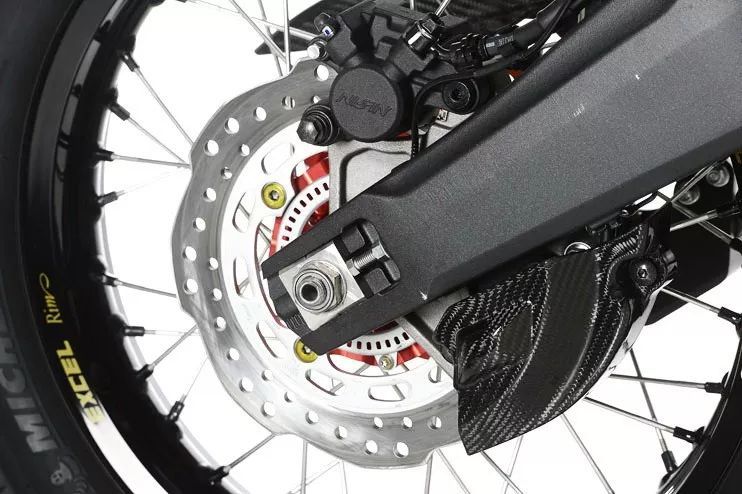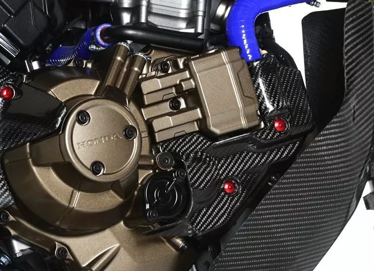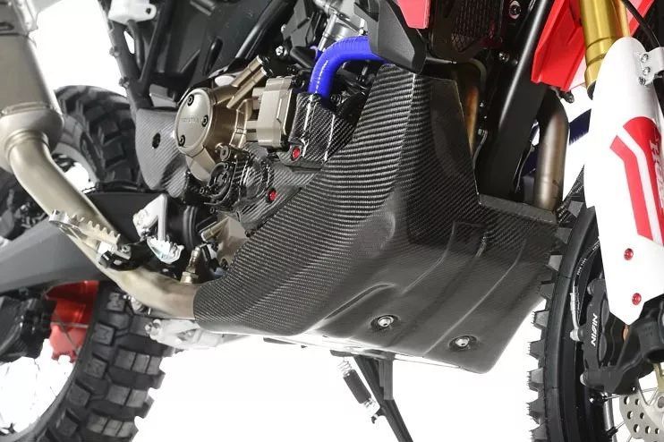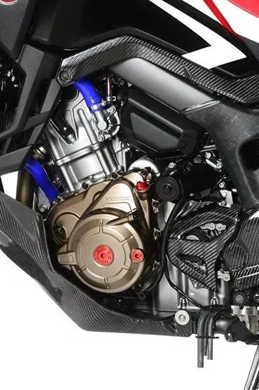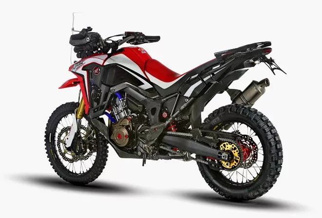 而這臺(tái) CRF1000L “ 非洲雙缸 ” Rally 拉力版是以 2017' CRF1000L 標(biāo)準(zhǔn)版為基礎(chǔ)改裝而來,雖然經(jīng)過了大幅度的改裝,但仍符合歐洲法規(guī)的(歐四排放標(biāo)準(zhǔn))、可在當(dāng)?shù)毓驳缆?span style="border: 0px; margin: 0px; padding: 0px;">下使用的產(chǎn)品(簡單點(diǎn)說就是可上牌的)。該車換裝了全 LED 的燈光系統(tǒng),符合達(dá)喀爾拉力賽標(biāo)準(zhǔn)的大型全 LCD 儀表板、所有的接插口都對應(yīng)了比賽的要求,新的全可調(diào)前、后懸掛系統(tǒng)(還可以選裝更高級(jí)別的倒立前叉),Termignoni 的鈦合金排汽系統(tǒng),換裝了賽車級(jí)的硅橡膠散熱水管,齒狀的鋁合金腳踏,Excel 的前、后鋼線輪框,包括底盤護(hù)罩在內(nèi)的全車多處碳纖維組件,整車重量比標(biāo)準(zhǔn)版的 “ 非洲雙缸 ” 輕了 7 公斤(221 公斤 vs 215 公斤),在為符合道路法規(guī)之下的輸出調(diào)校,最大馬力輸出為 100 匹(比標(biāo)準(zhǔn)版高 5 匹)。