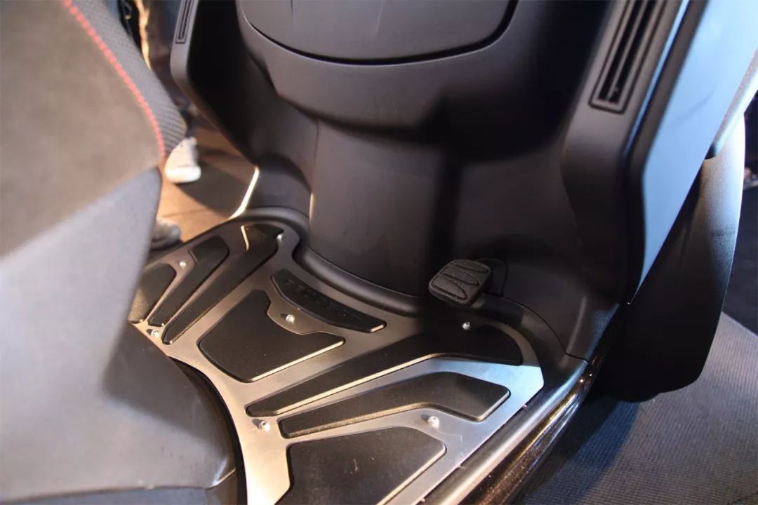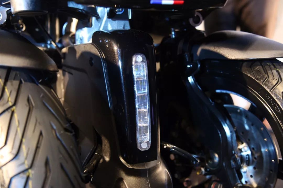 這款標(biāo)致Metropolis RXR 集合了很多時下兩輪車的流行元素,比如TCS牽引力控制系統(tǒng),兩段可調(diào),并支持關(guān)閉,還有無鑰匙啟動、胎壓監(jiān)測系統(tǒng)等,這些電子系統(tǒng)都讓這款400mL級別的倒三輪踏板車有了更多吸引力,當(dāng)然這款車三個輪子都有ABS系統(tǒng),搭配SBC剎車聯(lián)動,還配備腳剎系統(tǒng),并采用了Nissin制動卡鉗,保證安全性。兩個前輪之間還有日間行車燈來提高車輛辨識度。