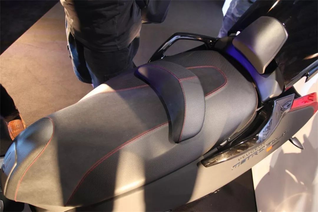 除了前儲物空間外,整車座墊下和后背箱都有可觀的儲物空間,并且兩個空間可以打通,所以像羽毛球拍等長的東西也能放下,很實用。除此之外,這款車還有可調(diào)風(fēng)擋、液晶儀表盤、電子駐車、可調(diào)節(jié)的座椅靠背和后座腳踏等,至于這款倒三輪踏板車騎起來怎樣,我們會在過幾天的推送中為大家解讀,敬請關(guān)注《摩托車》雜志全媒體平臺。