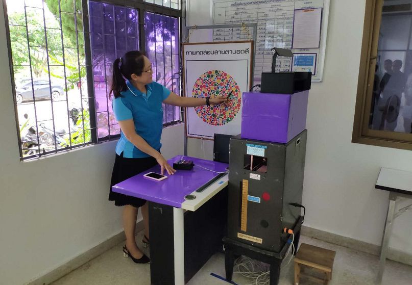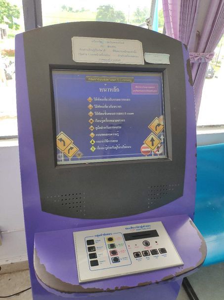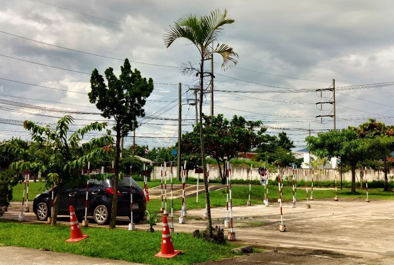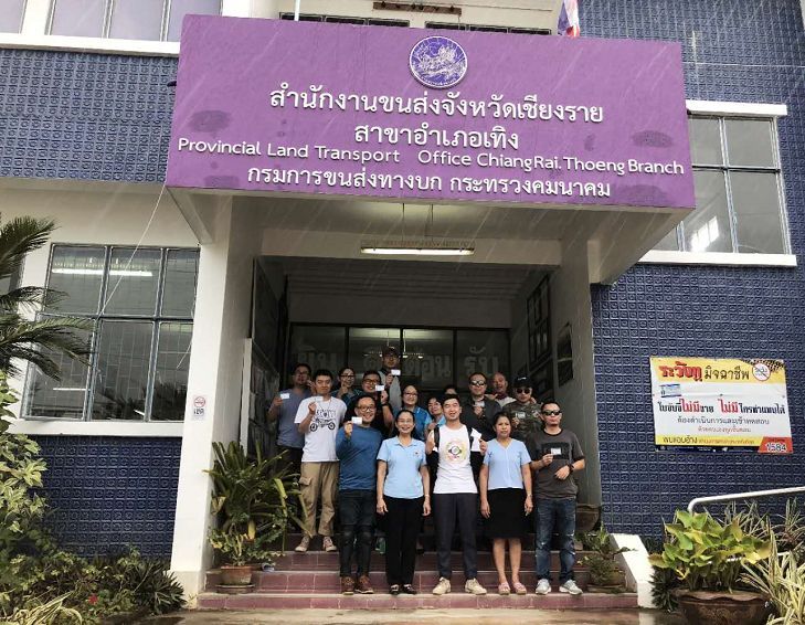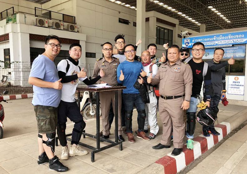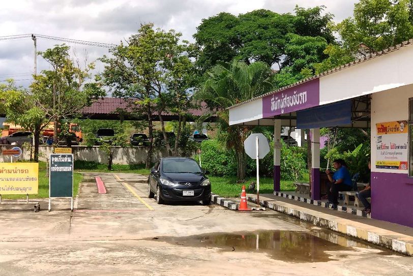 騎行十分鐘左右就來到了泰國海關(guān),辦理完通關(guān)手續(xù)后海關(guān)警察還十分熱情的主動要求與我們合影留念。泰國受英國影響,交通規(guī)則為靠左行駛,一開始確實有些不太習(xí)慣。由于泰國對自駕檢查較為嚴格,我們?nèi)腙P(guān)后就前往附近的交管部門(有上牌、驗車、考取駕照等職能范圍)考取泰國駕照。提交中國駕照的公證材料之后,通過三項測試,包括色盲色弱測試、反應(yīng)速度測試(腳踩油門踏板,前方機器紅燈亮起后及時剎車)和方位感測試(通過遙控器控制兩根桿移動至同一橫向),然后觀看一段警示視頻就可以拿到短期駕照。隨后幾位工作人員又主動來要求與我們合影,可能他們都喜歡這種儀式感吧。他們與當(dāng)?shù)厝嗣褚约拔覀兘涣鲿r都是帶著發(fā)自內(nèi)心的微笑,讓人覺得很舒服,這種服務(wù)態(tài)度也許是在國內(nèi)車管所很難體會的到吧。