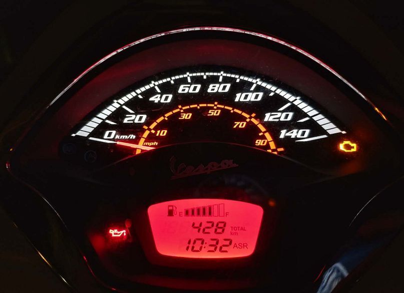由于是雨季,降水也是隨心所欲難以預(yù)料,拿到駕照準(zhǔn)備出發(fā)時外面下起了雨,只好雨衣加身,冒雨騎行。GTS 300除了標(biāo)配博世雙通道ABS以外,還帶有ASR防打滑系統(tǒng)。通過持續(xù)偵測前后輪轉(zhuǎn)速差,一旦發(fā)現(xiàn)轉(zhuǎn)速差過大,調(diào)整發(fā)動機輸出防止后輪空轉(zhuǎn)發(fā)生打滑。ASR默認是開啟狀態(tài),開啟后加速會變得稍平順一些。在摩擦力較小的路面環(huán)境上,這兩項配置增加了不少安全感。
