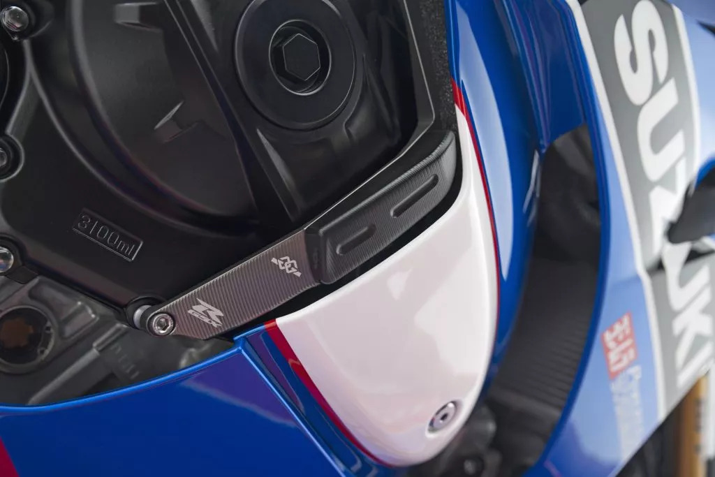 每輛車(chē)的油箱上都有編號(hào),同時(shí)這款車(chē)還換裝了吉村R11 SQ 排氣,同時(shí)還有來(lái)自鈴木的賽車(chē)配件,比如發(fā)動(dòng)機(jī)護(hù)件、離合器和前制動(dòng)防護(hù)桿等,除此之外還附送了一些Pit房配件,比如車(chē)罩、Pit房地墊、起車(chē)架等。