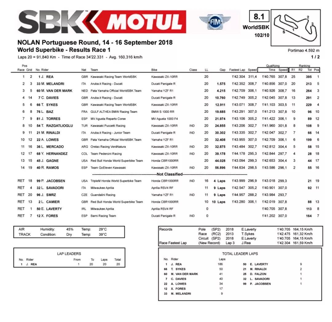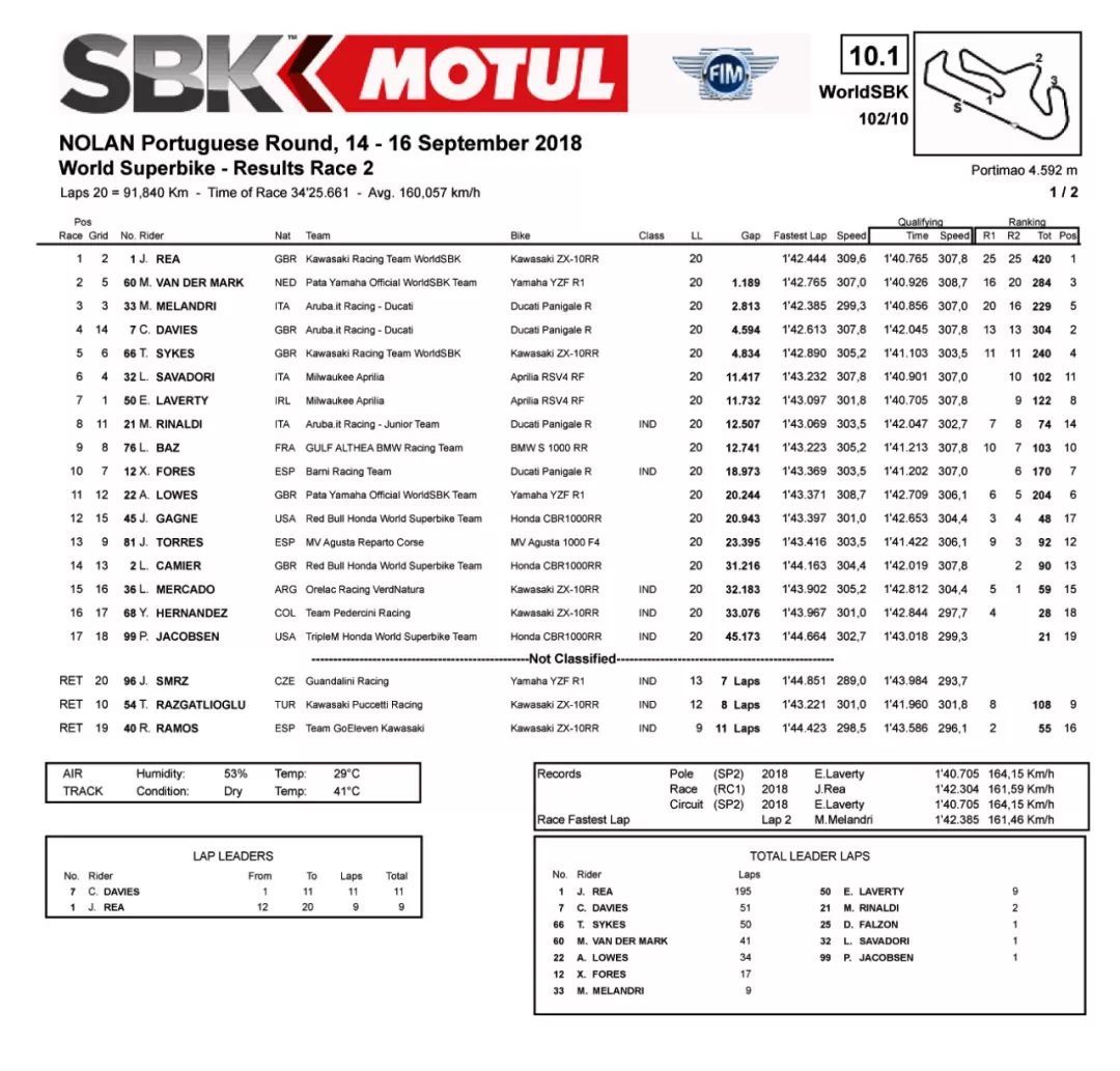 FIM 2018' WSBK 世界超級摩托車錦標(biāo)賽第十站、九月 14 到 16 號在葡萄牙的 Portimao 波蒂芒賽車場舉行。