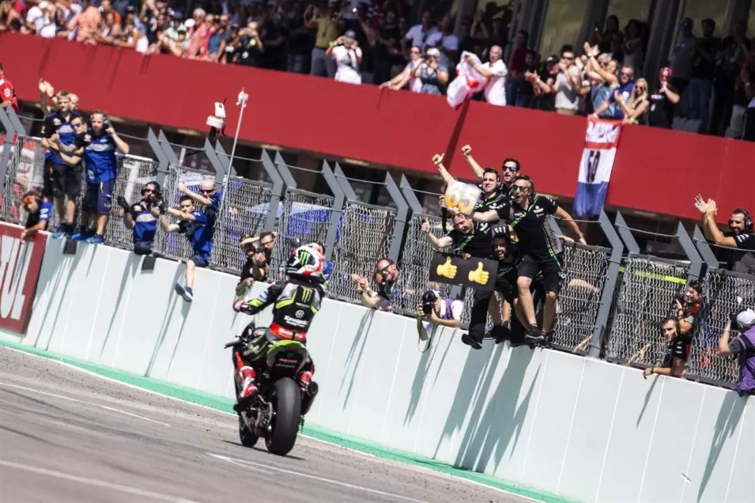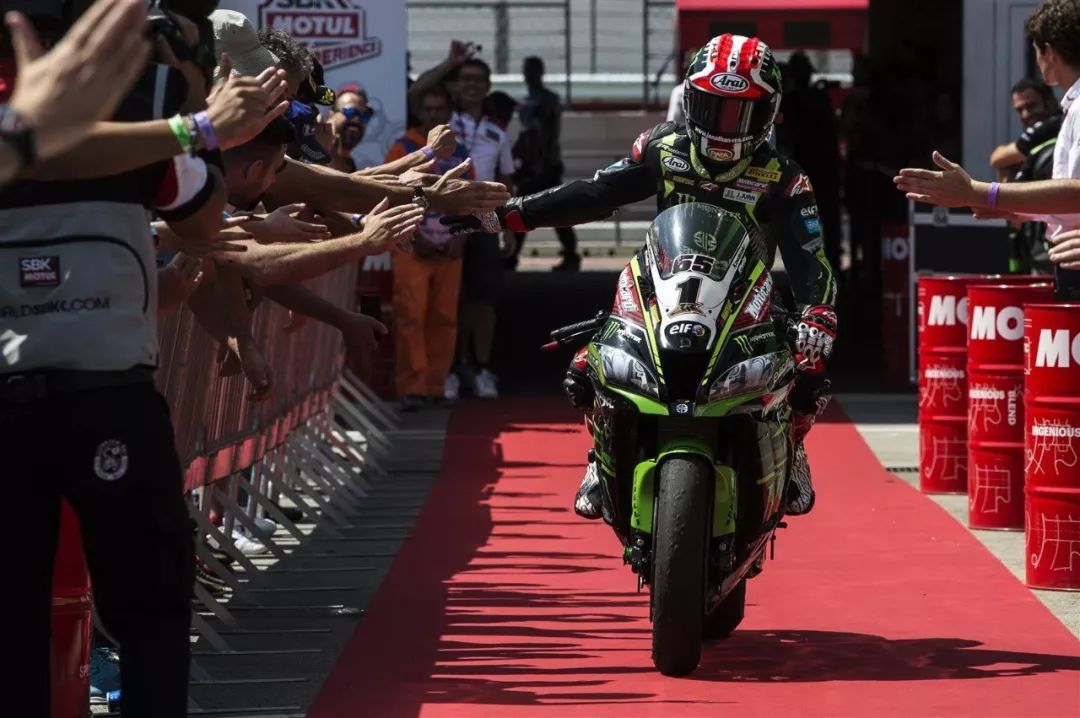 在排位賽拿到了第二位起步、KRT(Kawasaki 工廠車隊(duì))的英國車手雷亞(Jonathan Rea),在周六舉行的第一節(jié)比賽、起步不久之后就取得了領(lǐng)先的位置,并在比賽的第三圈跑出了 1 分 42.304 秒的最快圈速,此后、他帶領(lǐng)著每一圈的比賽。隨著領(lǐng)先優(yōu)勢的增加,到比賽的后段,雷亞似乎放慢了腳步,最終他順利奪得了第一節(jié)比賽的冠軍。這一節(jié)比賽的勝利,是雷亞職業(yè)生涯的第 65 個(gè)分站冠軍(正好對應(yīng)他之前常用的賽車號碼)。