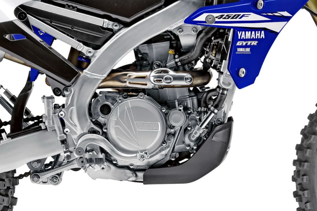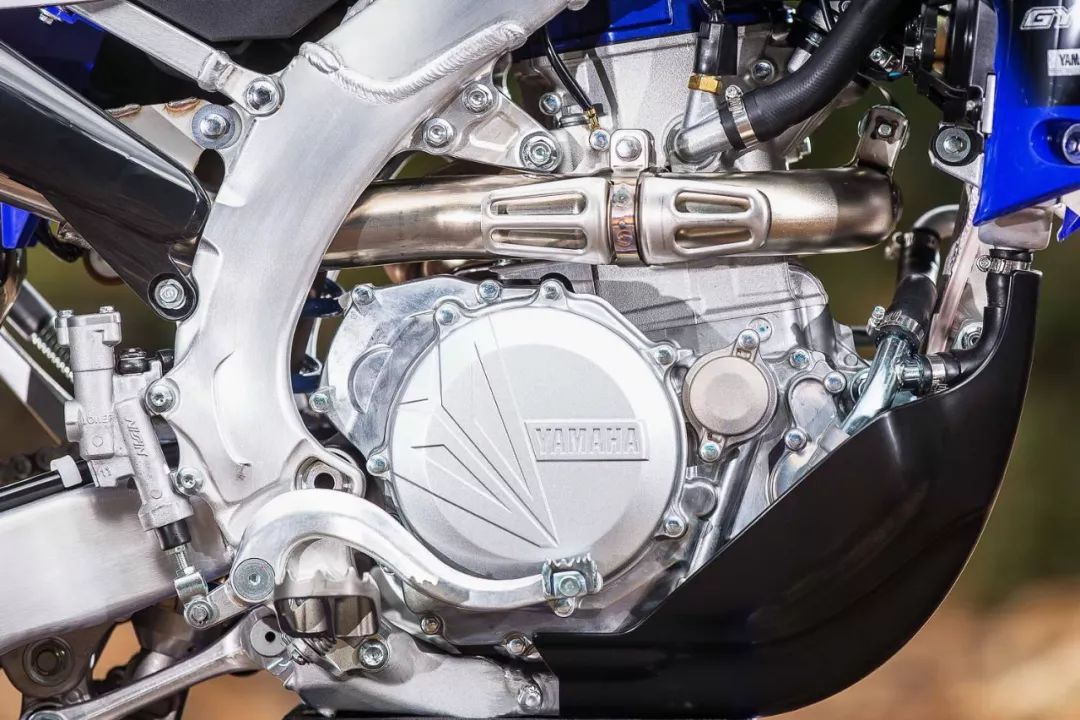 新的 2019' WR450F 基礎(chǔ)來自市售越野賽車 YZ450F 平臺,搭載一副與 YZ450F 共享的水冷四沖程后傾式反向單汽缸、DOHC 四汽閥的發(fā)動機,缸徑、行程為 97 mm x 60.9 mm,排汽量 450 cc,電子燃油噴注、五檔的變速齒輪箱。官方未公布新車的最大動力輸出,但估計會是與 YZ450F 相近的大約 60 匹(曲軸輸出)。新的 WR450F 配備了針對 Enduro 而重新設(shè)計的專用排氣系統(tǒng),ECU 內(nèi)的數(shù)據(jù)包經(jīng)過了修改、點火時間較 YZ450F 略有提前,并提供更平穩(wěn)的節(jié)氣閥控制調(diào)校,使發(fā)動機的輸出帶更加寬廣,牽引感更加出色,以應(yīng)對 Enduro 比賽的特定環(huán)境。車把的左側(cè)設(shè)有新的發(fā)動機動力輸出模式選擇按鈕,讓車手可以在行走的過程中,隨時調(diào)整發(fā)動機的動力輸出特性。而 2018 款原本預(yù)留的腳踩啟動連接軸(2018 款有電啟動功能),在新的 2019 款上、該位置已經(jīng)完全密封。