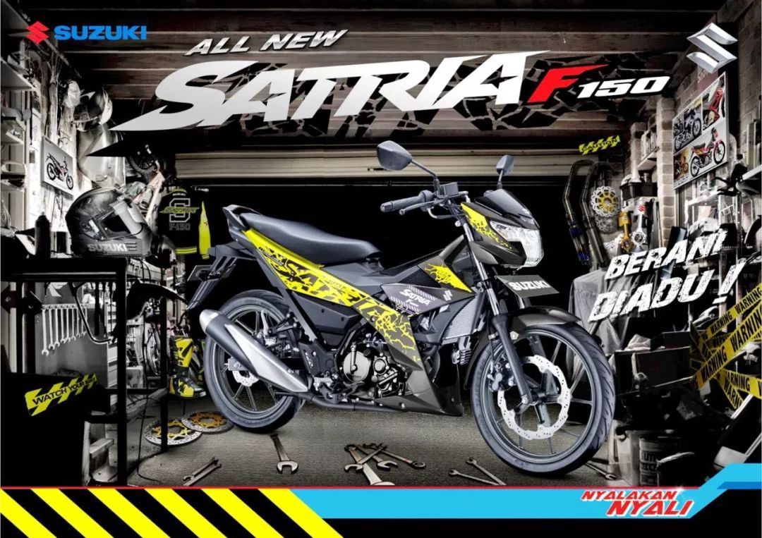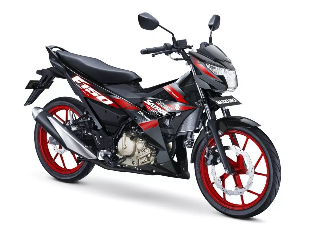 新的 Satria F150 來自與入門級跑車 GSX-R150 相同的基礎(chǔ)平臺,采用一副水冷四沖程單汽缸、DOHC 四汽閥的發(fā)動(dòng)機(jī),汽缸采用了東南亞同級產(chǎn)品中(日本品牌)唯一的大缸徑、短行程(62 mm x 48.8 mm)設(shè)計(jì),排汽量 147.3 cc,六檔的變速齒輪箱,電子燃油噴注,最大動(dòng)力輸出 13.6 kw,符合歐三的排放標(biāo)準(zhǔn)。車體采用一副方形截面的鋼管車架,正立式的前叉,數(shù)字式的儀表板,前、后碟式的制動(dòng)系統(tǒng),容量為 4 公升的油箱,全車整備重量分別為 109 公斤。