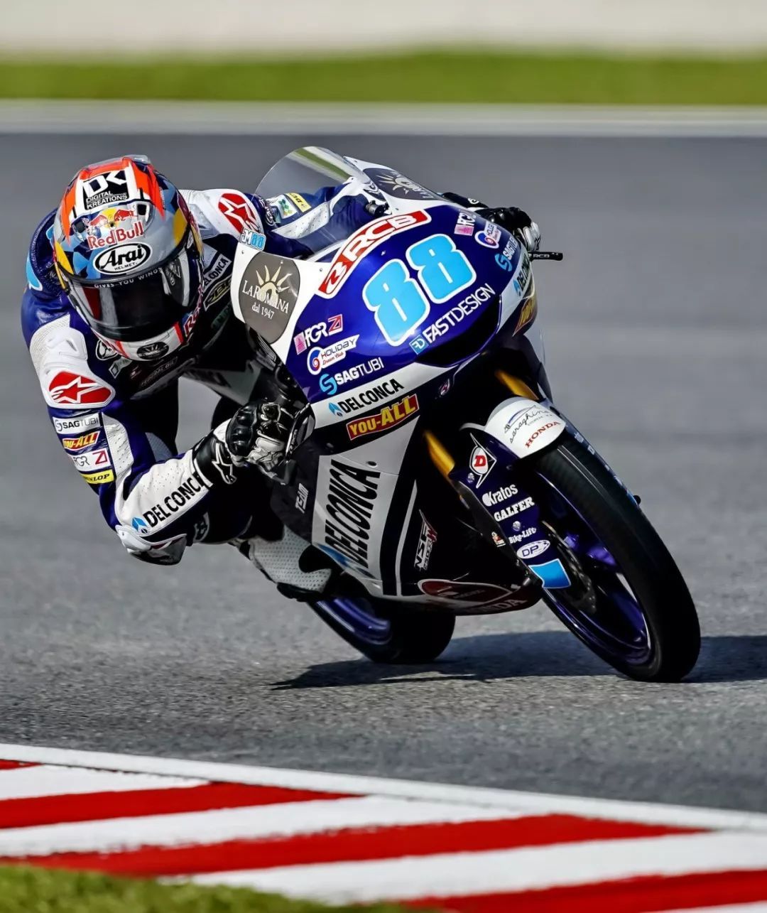 FIM 2018' MotoGP 第十八站、今天(十一月 3 日)在馬來西亞雪邦(Sepang)賽車場舉行了最后一節(jié)的排位賽。在 Moto3 級別,年度總冠軍的奪標大熱門、吉斯尼 Moto3 車隊(Team Gresini Moto3)的西班牙車手馬?。↗orge Martin),以破圈速的 2 分 11.731 秒最佳圈速,奪得了明天正賽的排頭位出賽(桿位)。