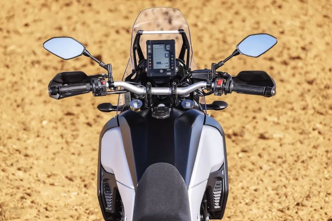 車體的其他方面,采用了叉芯口徑為 43 mm、行程為 210 mm 的倒立前叉,行程為 200 mm 的多連桿聯(lián)接后減震,容量達 16 公升、預計續(xù)航里程超過 350 公里的油箱,外觀造型設計獨特的四眼式 LED 前大燈,拉力賽樣式的液晶儀表板,標配了發(fā)動機底部護罩以及車把兩側(cè)的護手,前雙、后單的波浪碟式制動系統(tǒng)配備了可選擇關閉的 ABS 防鎖死系統(tǒng),前 21、后 18 英寸直徑的鋼線式輪框。