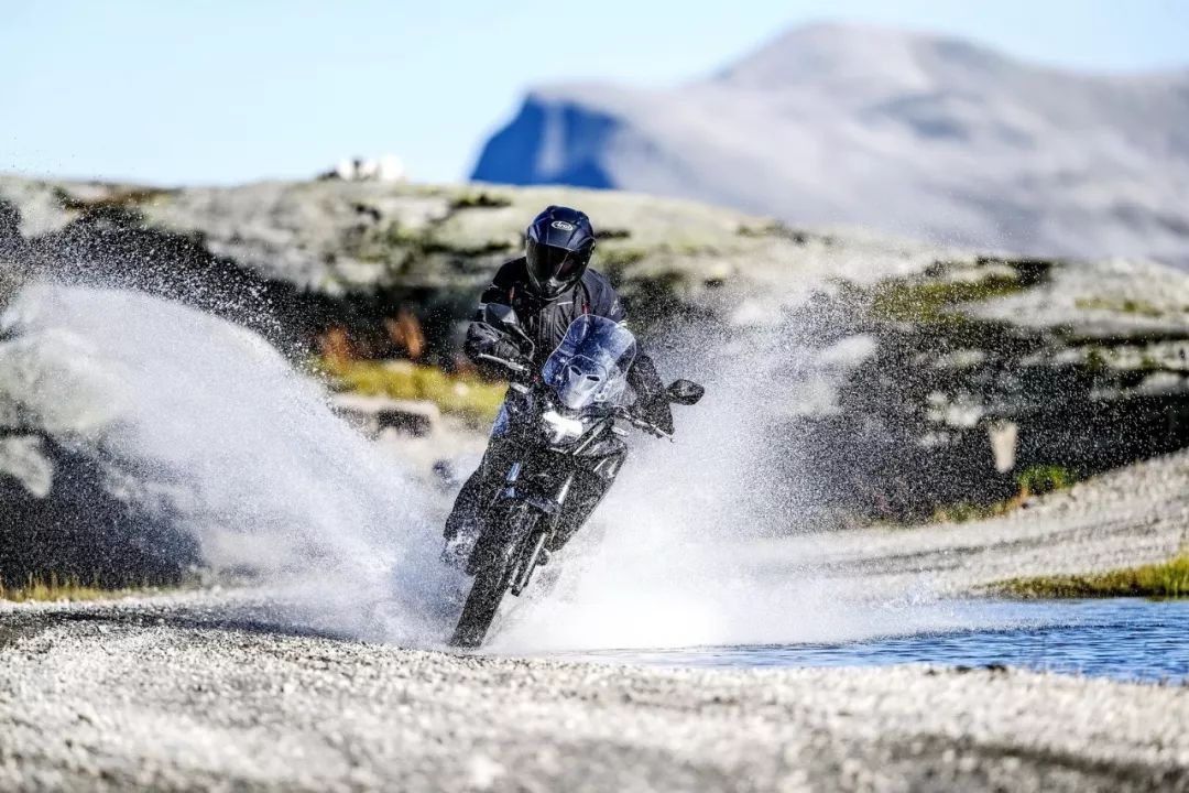 探險版的 2019' CB500X 有一個新的、名為 Ready for the wild “ 為荒野而準(zhǔn)備 ” 的探險車外觀造型,這個新設(shè)計造型、核心不僅僅是在外觀,同時也針對空氣動力學(xué)性能作出了改善,可有效降低流經(jīng)車頭整流罩和車體兩側(cè)邊殼的高壓空氣,從而提高了在高速公路上騎乘時的防風(fēng)性能。鞍座的造型輪廓也經(jīng)過了計算,讓車手可以在顛簸路面駕駛時、可以輕松地移動,且鞍座前端的下方有傾斜設(shè)計,便于雙腳著地。新的懸掛系統(tǒng),叉芯口徑為 41 mm 的正立式前叉,行程為 150 mm、比現(xiàn)行的 2018 款多了 10 mm;而新的、可調(diào)預(yù)載的單筒后減震,行程為 135 mm(現(xiàn)行的 2018 款為 118 mm)。