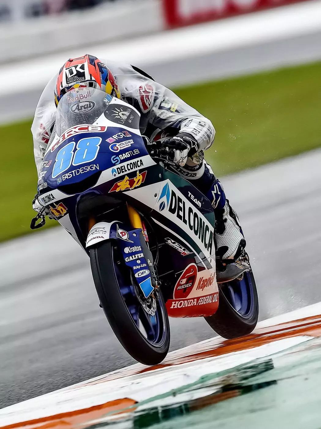 已經(jīng)把 Moto3 雙料世界冠軍(車手年度總冠軍、車隊(duì)年度總冠軍)拿到了手的吉斯尼 Moto3 車隊(duì)(Team Gresini Moto3),88 號(hào)車的馬丁將為了創(chuàng)造記錄而戰(zhàn),而 21 號(hào)車的 吉南托尼奧(Fabio Di Giannantonio)目前在積分榜上、以 205 分排在第三,與排在第二的貝澤奇(M. Bezzecchi)相差 9 分,在今年的最后一個(gè)分站比賽、吉斯尼 Moto3 車隊(duì)將為囊括今年 Moto3 的車手年度冠亞軍而努力。