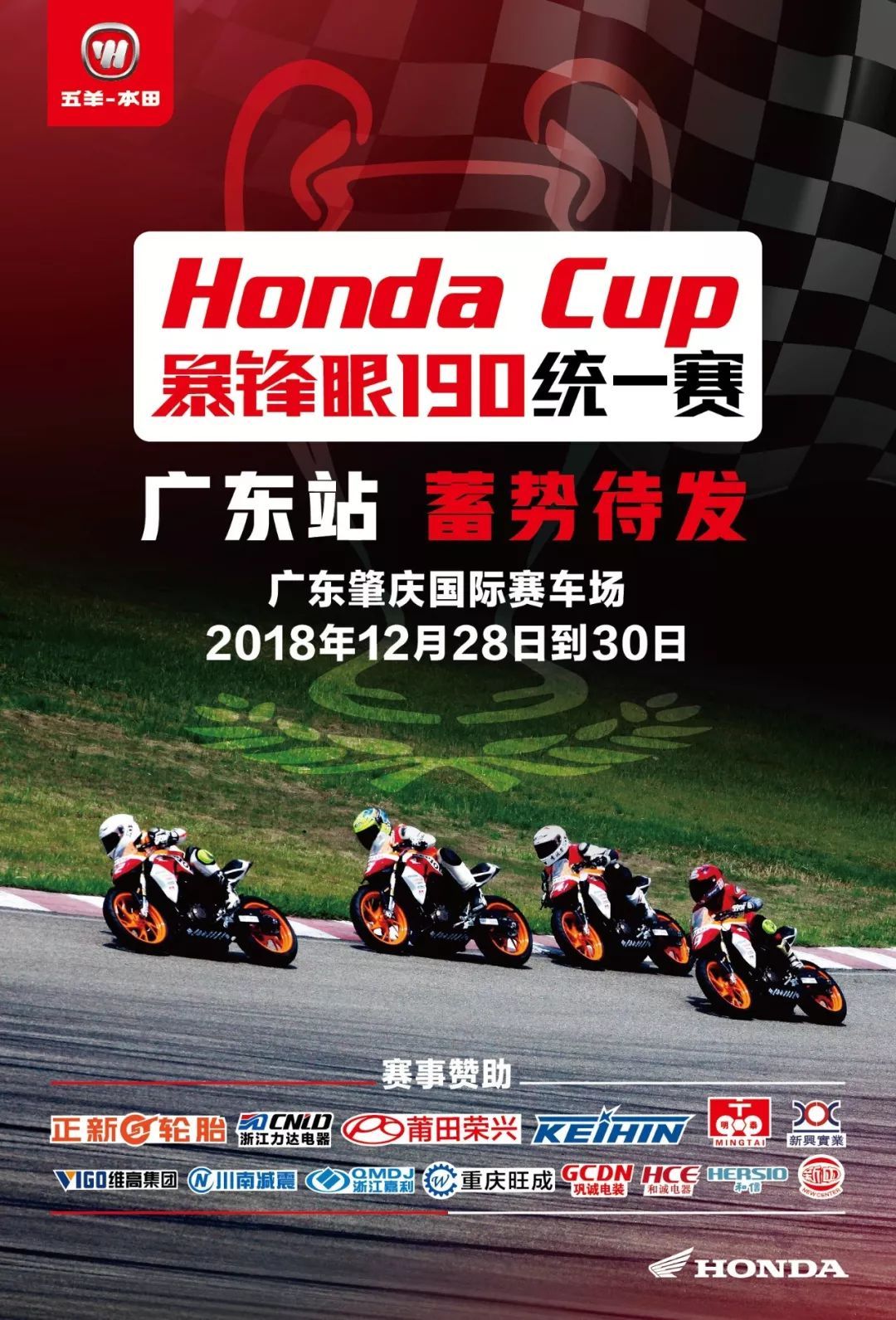 2018賽季的Honda在兩輪運(yùn)動(dòng)賽事上再次取得了大豐收,馬奎茲再次衛(wèi)冕MotoGP世界冠軍,更是宣告了Honda在公路賽事領(lǐng)域的統(tǒng)治地位!與此同時(shí),Honda也與五羊-本田聯(lián)手,致力于在中國(guó)推廣領(lǐng)先的賽事文化。2018年12月28日至30日,Honda Cup——暴鋒眼190統(tǒng)一賽將在廣東肇慶國(guó)際賽車場(chǎng)開幕。經(jīng)過專業(yè)改裝的五羊-本田暴鋒眼190賽車,將載著中國(guó)車手們的夢(mèng)想再次激情發(fā)車!