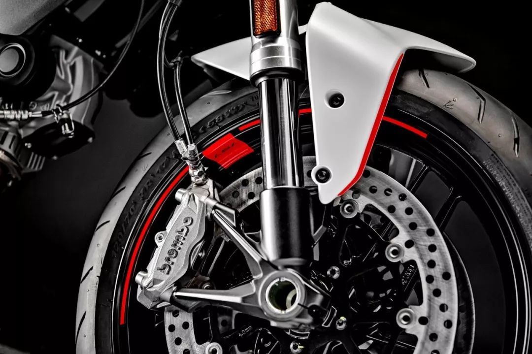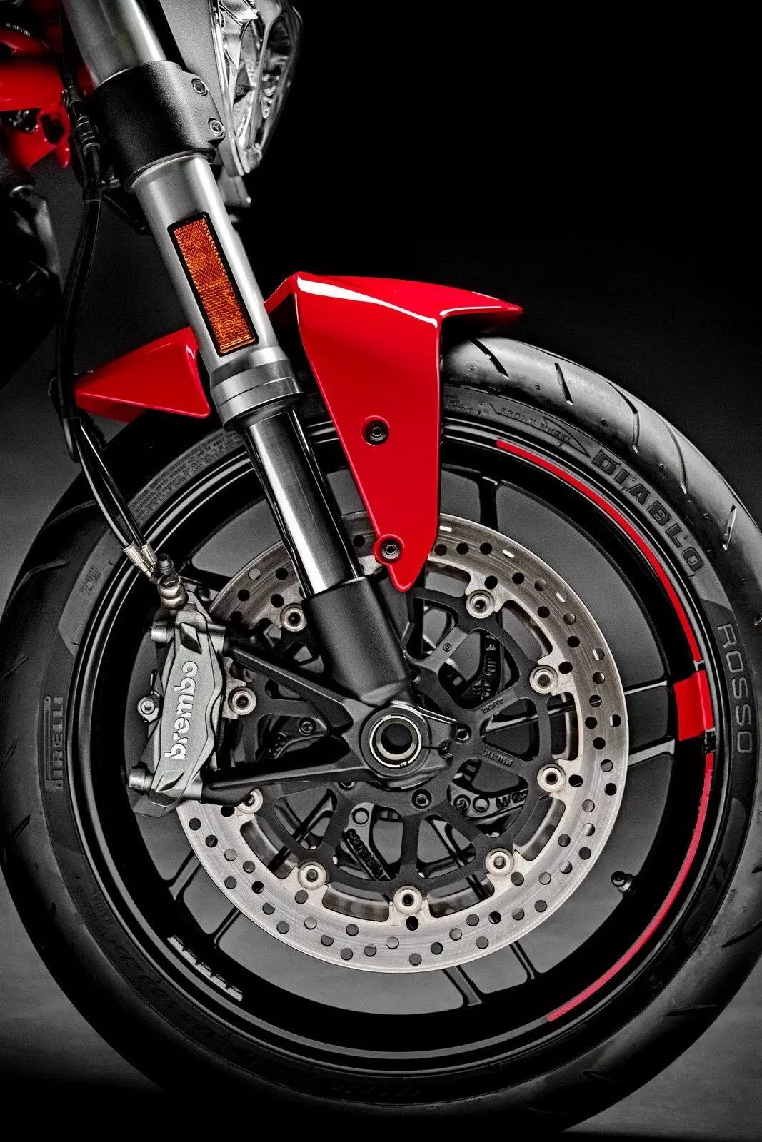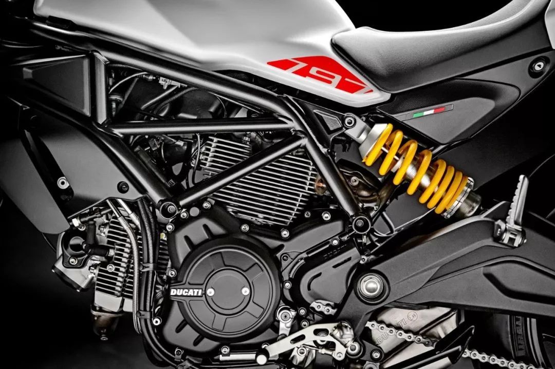 與現(xiàn)行的 2018 款相同,新的怪獸 797 系列沿用一副風(fēng)冷四沖程 L 型兩汽缸、Desmodue 每汽缸兩汽閥的發(fā)動機(jī),缸徑、行程仍是極具運(yùn)動性的 88 mm x 66 mm 的設(shè)計,排汽量 803 cc,節(jié)汽閥口徑為 50 mm 的電子燃油噴注系統(tǒng)、六檔的變速齒輪箱,最大動力輸出 55 kw(約 75 匹。中國版的最大動力輸出為 53 kw)。車體采用一副鋼管式車架、鋁合金后搖臂,叉芯口徑為 43 mm 的 KYB 倒立前叉、Sachs 的單筒式后減震,Brembo 貝伯的制動系統(tǒng),數(shù)字式的 LCD 儀表板。