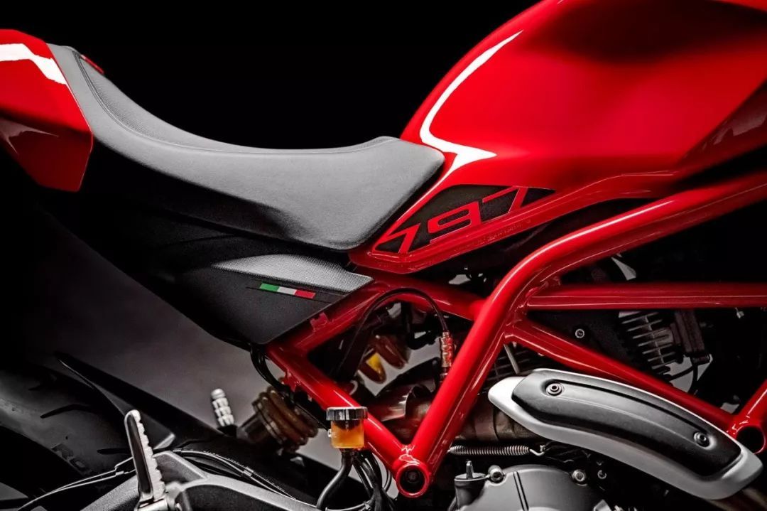 新的 2019' 怪獸 797 系列采用了新的車身圖案,以及輪框添加了新的紅色貼花。與標(biāo)準(zhǔn)款相比,怪獸 797 Plus 加裝了一個儀表板前方的小型整流罩,以及后座乘客鞍座蓋。