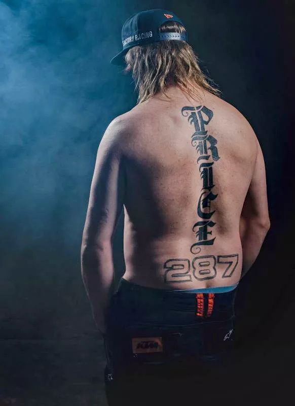 KTM 的 2019' 達(dá)喀爾拉力賽工廠車隊(duì)里、有著多位的冠軍車手,其中英國(guó)車手桑德蘭(Sam Sunderland)是 2017 年的冠軍,而澳大利亞車手普萊斯(Toby Price)是 2016 年的冠軍。兩人都有著相似的 “ 嗜好 ”:紋身。只是,一個(gè)紋在雙腿(桑德蘭)、一則紋在上身(普萊斯)。