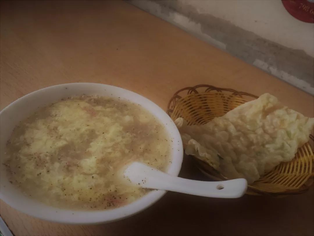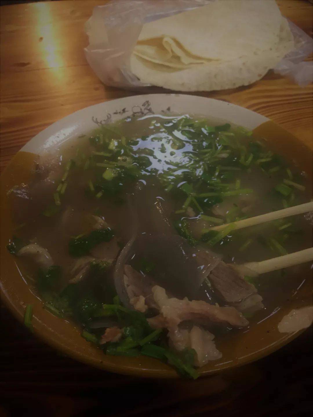 3-這是百善鎮(zhèn)的晚餐——羊肉湯、蒸薄餅。這邊的羊肉湯,比徐州和魯南的差遠(yuǎn)了。