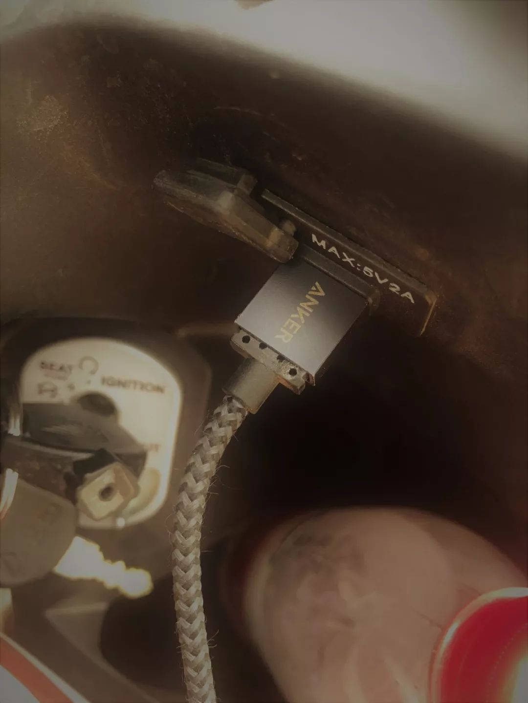 19-此行沒(méi)帶移動(dòng)電源。EX125右把下有使用方便的USB接口,行駛中就把手機(jī)充滿(mǎn)電了。