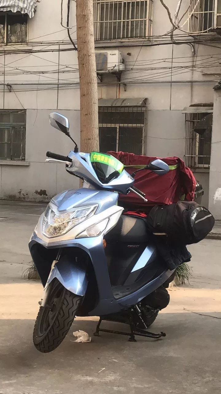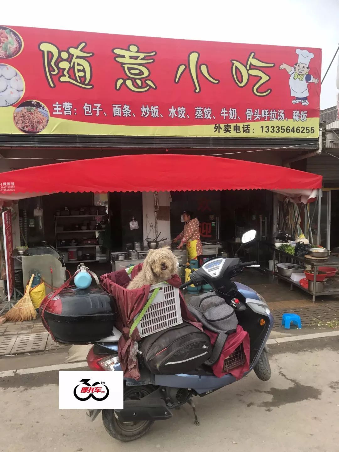20-中午時(shí)分,在霍邱城區(qū)吃飯。這張照片就是EX125的裝載狀態(tài)——尾箱、側(cè)包是后配的;杜淘氣在后座的筐子里;杜毛妮在踏板上的筐子里;踏板前方還有很寬敞的空間,行車(chē)時(shí)雙腿很舒展地伸出去,感覺(jué)好極了。絕對(duì)是車(chē)小空間大,裝載能力讓我滿(mǎn)意。