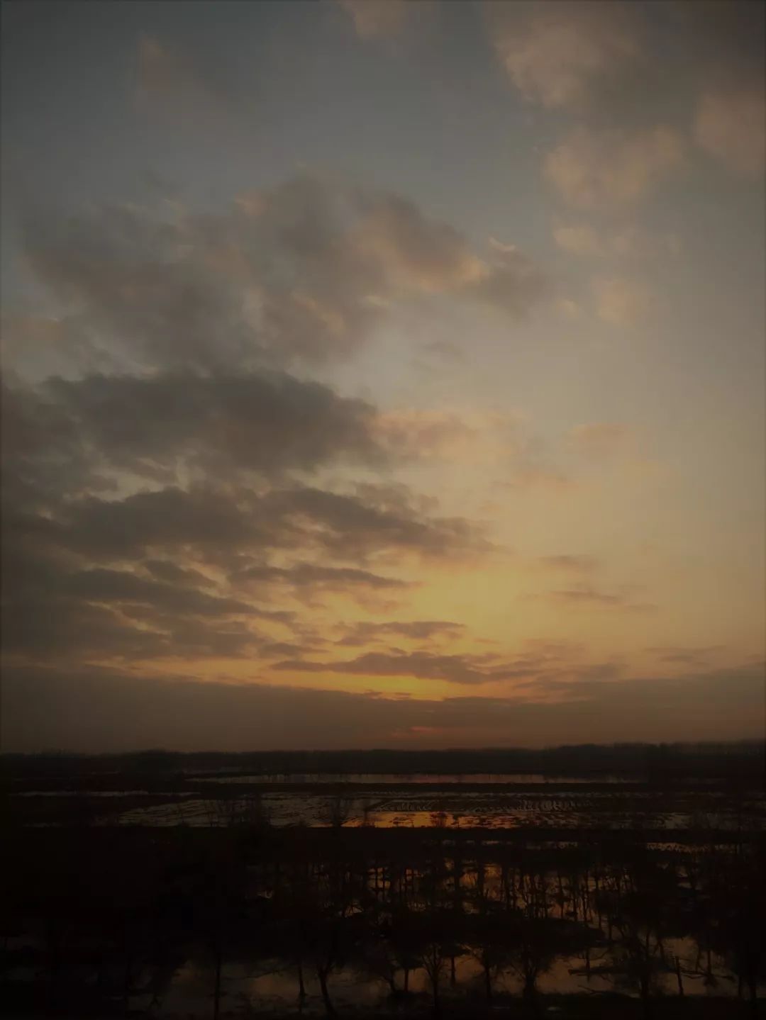 15-駛上臨淮崗大堤,眼前一亮——夕陽(yáng)下一汪汪水、一行行樹(shù),養(yǎng)眼……