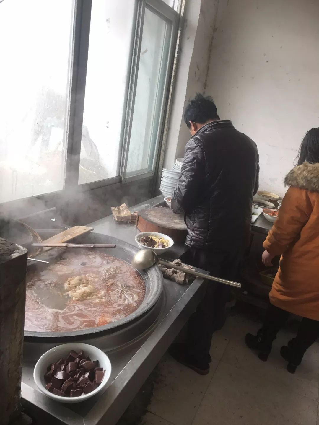 5-12月20日早上,在蒙城賓館附近的早飯。碗里是皖北、蘇北流行的“啥”湯(魯南叫“撒”),蒙城的這碗“啥”湯,比發(fā)源地徐州的還好喝。所謂“啥”湯,傳說(shuō)源于彭祖當(dāng)年孝敬皇帝的野雞湯,流傳到清朝后,某日下江南的乾隆路過(guò)徐州,喝到了這碗用雞、骨頭等材料熬制的鮮湯后隨口問(wèn)道:“這是啥湯?”……因此得名。