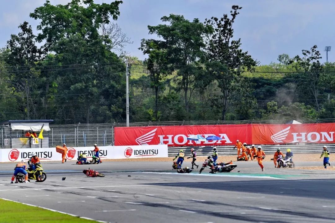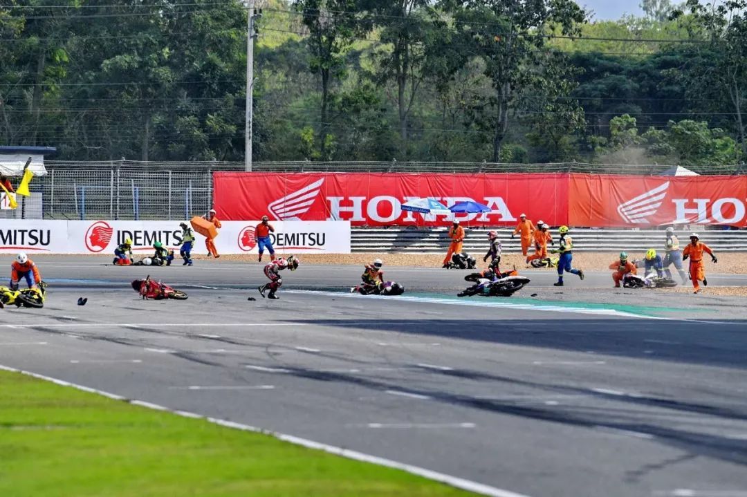 UB150 彎樑級別,第二節(jié)比賽、最后一圈的最后一個(gè)彎道,在拼搶激烈之下,前列集團(tuán)發(fā)生波及近半?yún)①愓叩乃ぼ囈馔?,屬于第一集團(tuán)的近十名車手摔倒在轉(zhuǎn)入跑道大直路前的彎角,賽車零件散布了一地。而第二節(jié)比賽,出場參賽者的數(shù)量為 26 人。