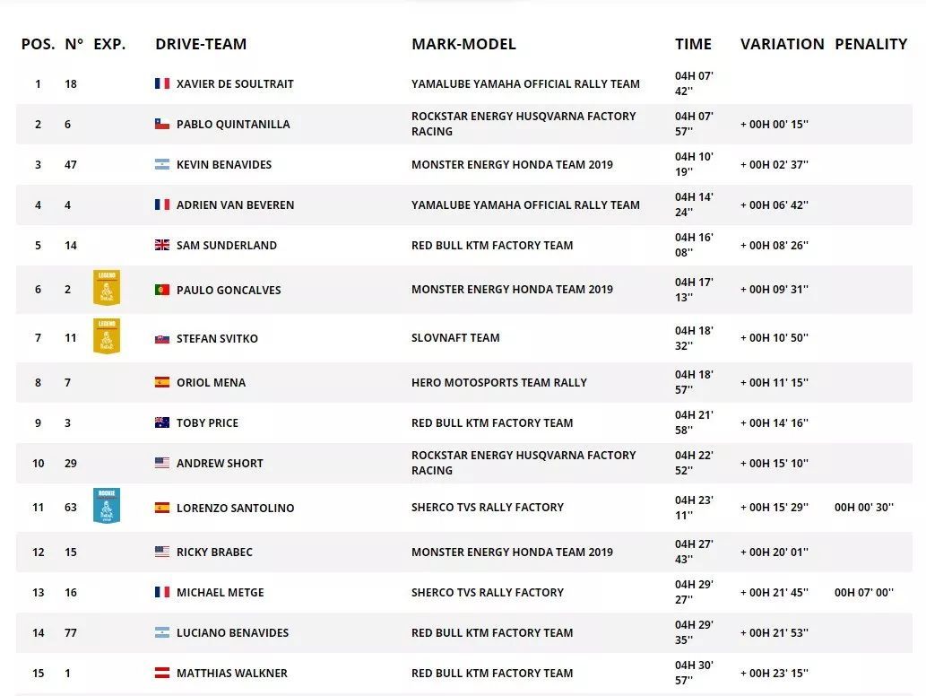 駕駛 18 號車、Yamaha 工廠車隊的蘇里拉伊(Xavier de Soultrait)憑借著出色的發(fā)揮,成功地成為第一批從特殊賽段走出來的車手之一、并順利返回終點(diǎn),為 Yamaha 帶來了今年比賽首個的賽段勝利。