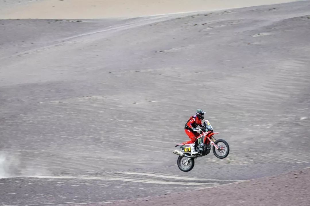 受到能見度較低的大霧天氣以及復(fù)雜的巖石區(qū)域路況影響,在前兩個賽段取得一冠和一個第三、正處于領(lǐng)先位置,駕駛 5 號車、HRC 車隊的巴雷達(dá)(Joan Barreda)在一個山谷中失控,滑進(jìn)了一條無法逃離的峽谷中,被迫提前退出了今屆達(dá)喀爾余下的比賽。