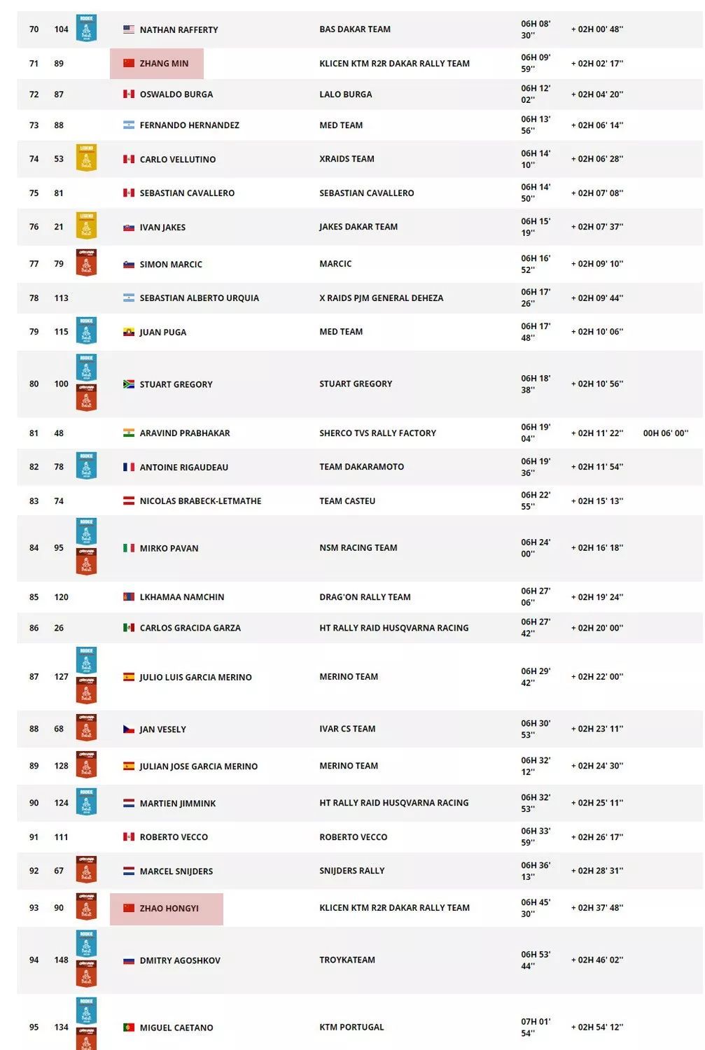 兩位中國車手,駕駛 89 號車的張敏在第三賽段獲得了第 71 位,而另一位車手、駕駛 90 號車的趙宏義則獲得了第 93 位。