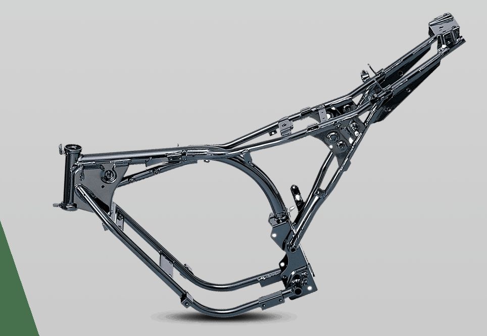 如果說,發(fā)動機是摩托車的“心臟”,那么車架就是摩托車的“骨骼”。車架與摩托車的操控性能、乘騎舒適度密切相關。車架支撐著發(fā)動機,為轉(zhuǎn)向機構和后減震器提供固定位置,承載著騎手、乘客和他們的行李,此外還為油箱、蓄電池等提供安裝位置等等。