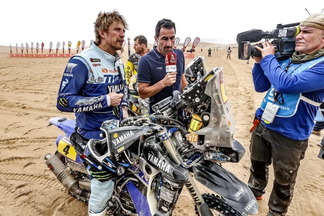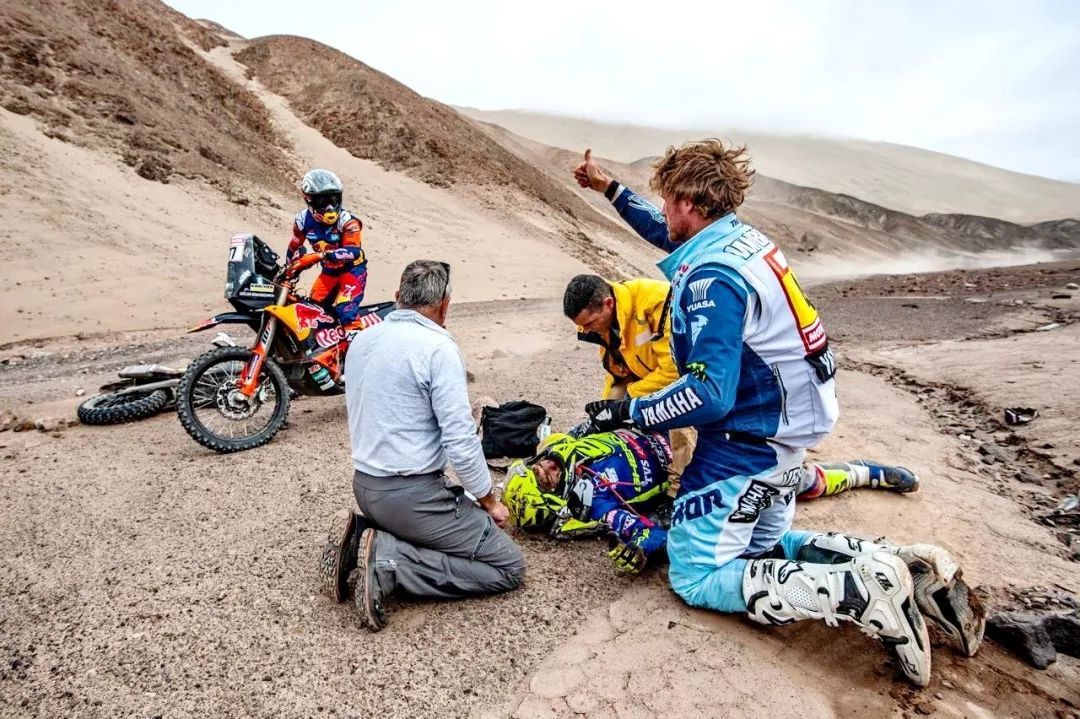 2019' 達喀爾拉力賽第六賽段,駕駛 4 號賽車、Yamaha 工廠車隊的法國車手貝弗倫(Adrien Van Beveren),在比賽途中看到有車手發(fā)生意外之后,貝弗倫判斷為情況緊急之下、停車察看受傷的車手。