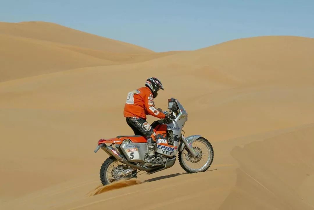 KTM從2001年開始制霸達喀爾拉力賽。那時廠隊車手們的座駕是660 LC4——一臺單缸猛獸。究竟有多兇猛?2002年,當年的達喀爾冠軍Fabrizio Meoni騎著它戰(zhàn)勝了一輛雙缸LC8賽車;同年的排行榜上,前20位有19輛都是KTM賽車……