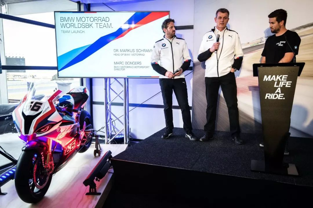 寶馬摩托部的主管施拉曼(Markus Schramm),車隊的負(fù)責(zé)人邦格斯(Marc Bongers)、肖恩(Shaun Muir),以及兩位車手賽克斯(Tom Sykes)、雷特博格(Markus Reiterberger)也一同出席了這次的發(fā)布會。