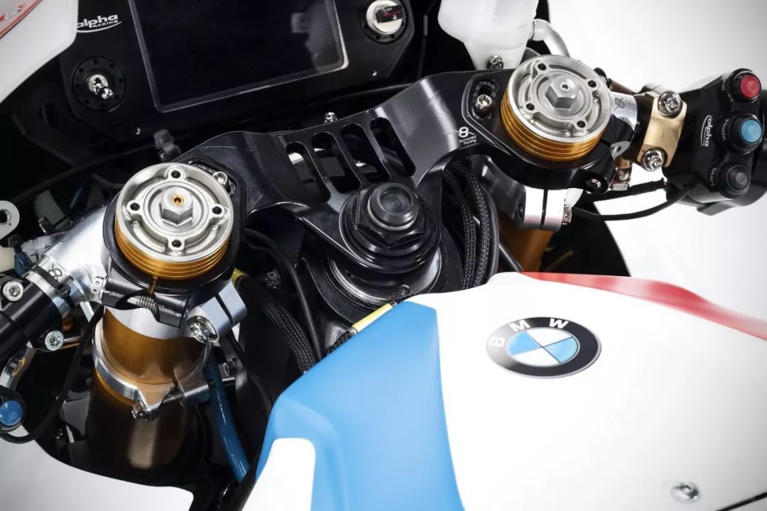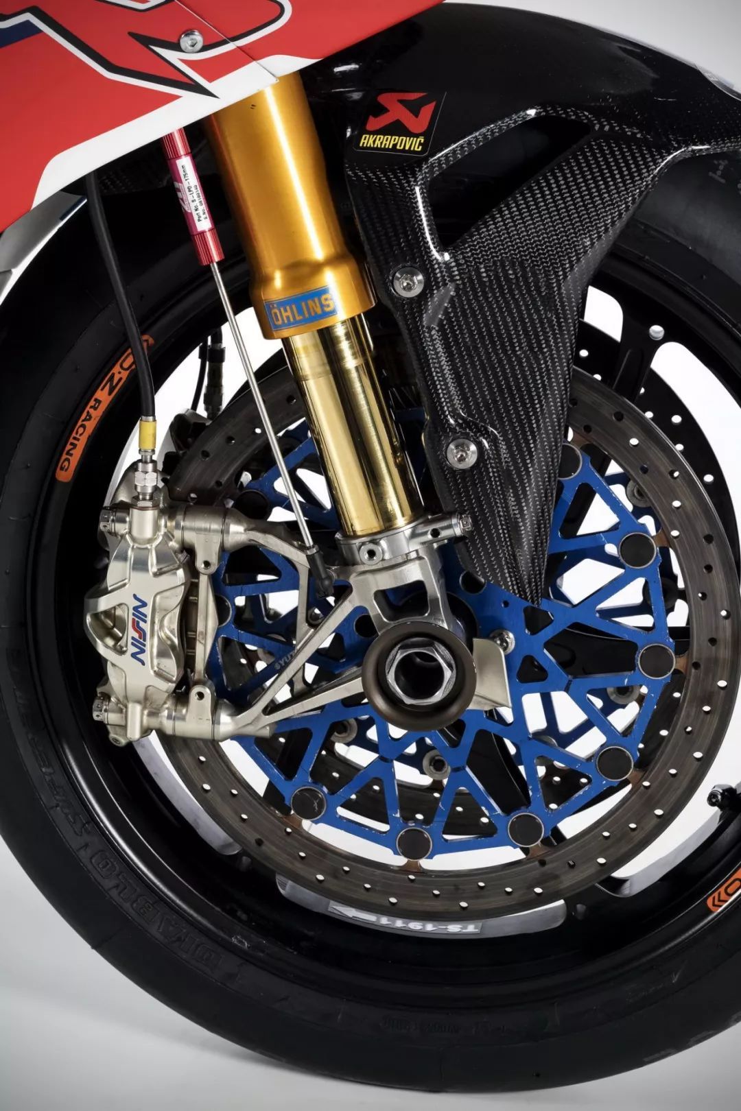 下面的圖片、寶馬參加 FIM 2019' WSBK 世界超級(jí)摩托車(chē)錦標(biāo)賽的 S1000RR 工廠(chǎng)賽車(chē)及部分車(chē)體細(xì)節(jié)的特寫(xiě)。