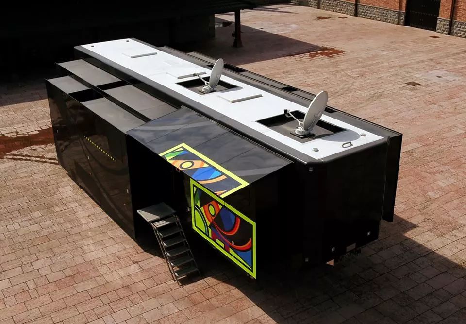 以羅西的房車為例,只有35㎡的房車停下之后,利用內(nèi)部的電機(jī)和模塊,可以擴(kuò)展到74㎡,內(nèi)部尺寸加倍也為里面的布置提供更多可能。羅西的房車已經(jīng)能夠達(dá)到兩室一廳的水平,里面有客廳、廚房、會(huì)議室、臥室,浴室等豪華設(shè)施,車頭部分的兩見(jiàn)雙人臥室,由獨(dú)立的單人床組合,可以合并也可以隱藏。同時(shí)房車內(nèi)還有先進(jìn)的自動(dòng)化系統(tǒng),可以自動(dòng)調(diào)節(jié)燈光,溫度以及控制窗簾和音樂(lè),甚至還可以控制車外的照明系統(tǒng)。整個(gè)房車還有兩個(gè)衛(wèi)星天線、全套監(jiān)控系統(tǒng)、Bose音響系統(tǒng)等。