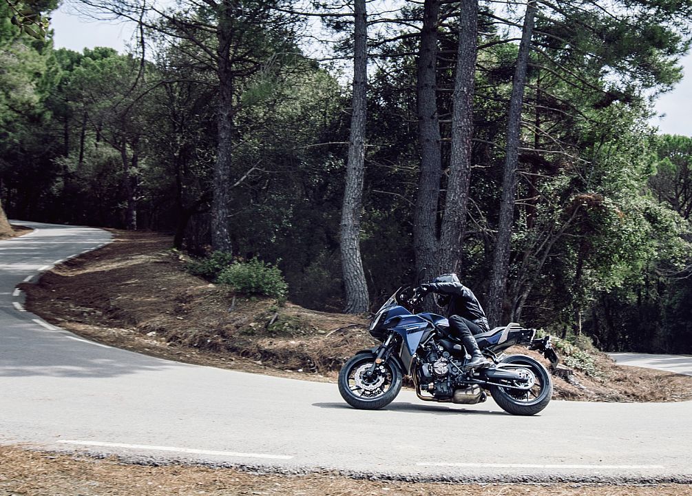 在長途奔馳中,一點點的不適,都會被成千上萬千米的旅途不斷地放大,變成難以忍受的問題。因此,作為旅行摩托車,每個細(xì)節(jié)的優(yōu)化都是值得稱道的。Tracer 900 GT在這方面作了精心推敲,比如標(biāo)配了巡航控制系統(tǒng)。這套系統(tǒng)與MT-10相同,當(dāng)擋位處于4、5、6擋,速度介于50km/h~180km/h之間時,騎手可以自主設(shè)置固定的巡航速度,從而緩解右手?jǐn)Q著油門的疲勞。取消自動巡航很簡單,騎手只需操作下制動拉桿或離合器拉桿,又或者是擰下油門,即可迅速解除;如果要恢復(fù)原來的設(shè)置,只需摁一下“繼續(xù)”按鍵即可。又如,更大的風(fēng)擋,為騎手提供更好的防風(fēng)保護,即使以150km/h高速巡航,騎手和乘客仍然感覺舒適。再如,Tracer 900GT標(biāo)配了加熱車把。當(dāng)騎手在清冷的早上出發(fā),又或者穿過深秋的颯颯秋風(fēng)時,從車把上傳來的絲絲暖意,會讓人覺更加溫暖舒適……