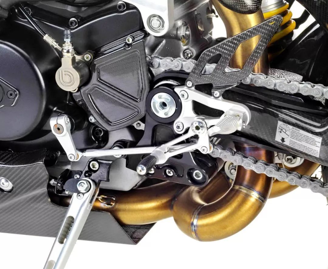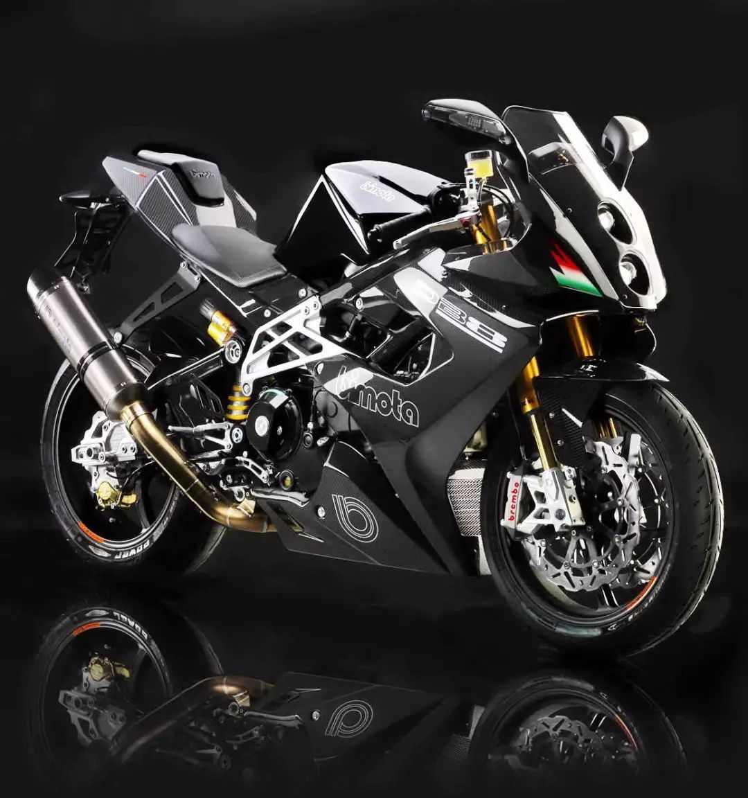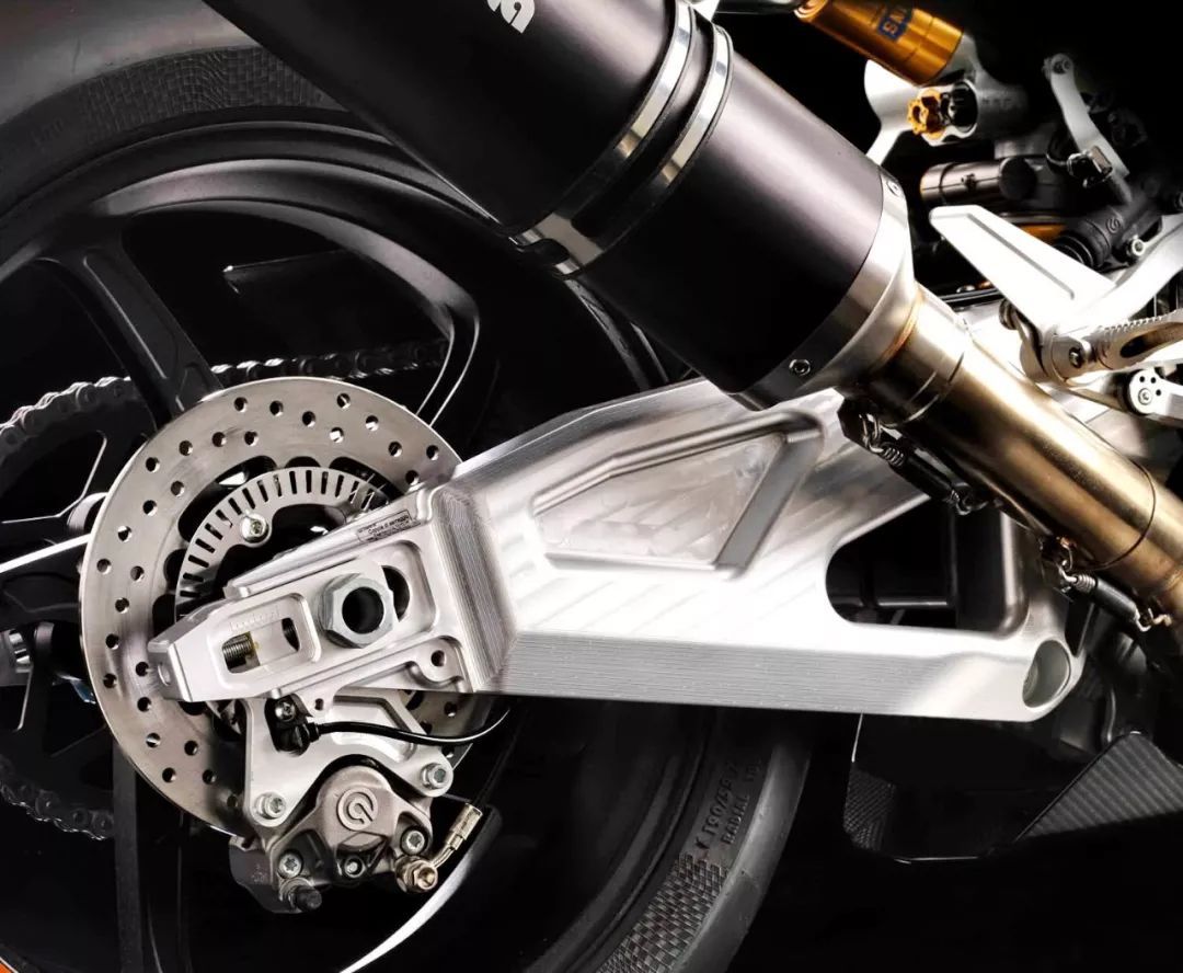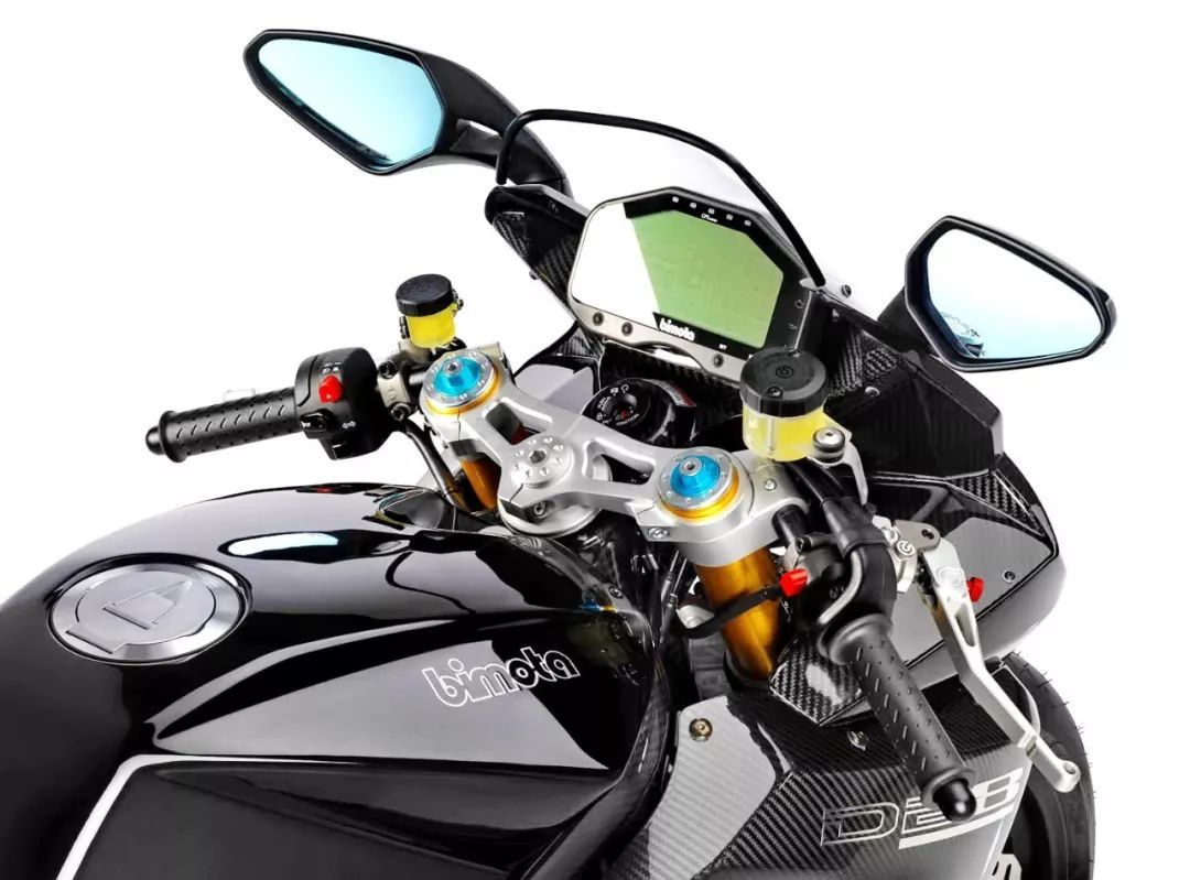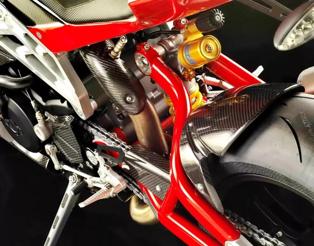 同場(chǎng)展示的、還有廠方的另一個(gè)系列車(chē)型 DB8 Oronero CR(碳纖版)。DB8 是比摩塔現(xiàn)行的核心車(chē)型之一,搭載一副來(lái)自杜卡迪的水冷 L 型兩汽缸、排汽量 1,198 cc 的發(fā)動(dòng)機(jī),最大動(dòng)力輸出 170 匹。車(chē)體同樣采用一副比摩塔自行開(kāi)發(fā)的車(chē)架,并大量采用了碳纖維制作而成的零件。而現(xiàn)場(chǎng)的 DB8 Oronero CR 展示車(chē),更是采用了碳纖維制的前剎車(chē)碟。