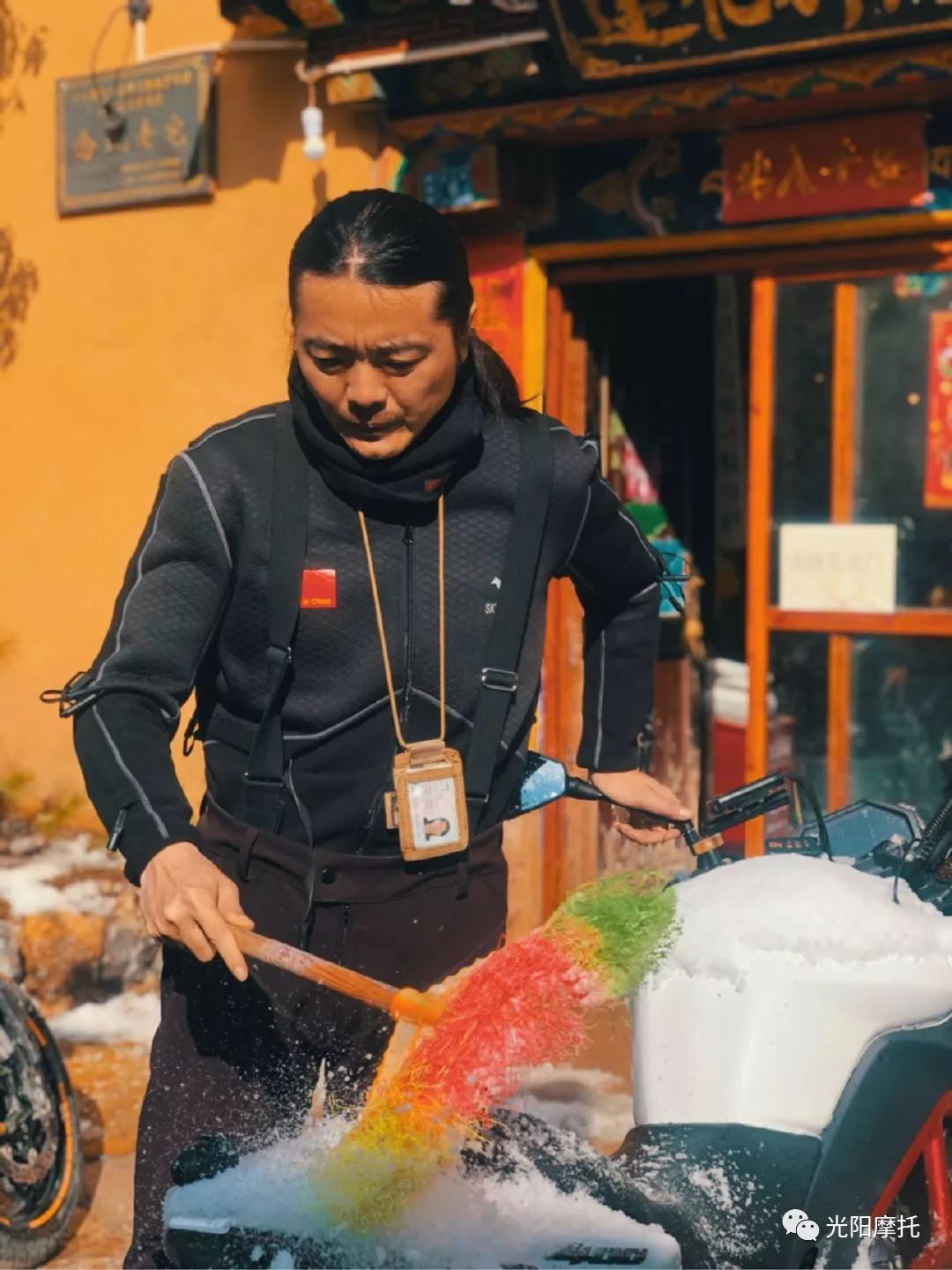 客棧老板的弟弟扎施將楚碰巧是一位藏族車友,車輛從CBR1000換成哈雷X48。自從見到之后,他把藏族的熱情和車友間的友情糅合在一起,除了睡覺外不離不棄。得知我想去松贊林寺為往后的旅程祈福,他決定一同前往,我也決定往返二十公里讓他試一下KRIDER400。