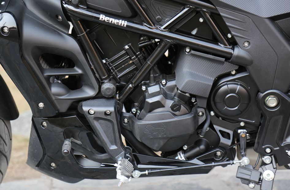 502 C搭載了TRK 502和幼獅500上那臺并列雙缸DOHC八氣門發(fā)動機(jī),排量500mL,采用德爾福電噴系統(tǒng),壓縮比11.5:1。最大功率35kW/8500rpm,最大扭矩45N·m/5000轉(zhuǎn)。從參數(shù)上也能看出這款發(fā)動機(jī)的最大扭矩輸出偏向中低速區(qū)間,驅(qū)動220kg的502 C游刃有余。